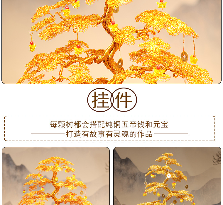 手作り銅線発財樹招財樹アルミ線発財樹手工芸品開業贈答品