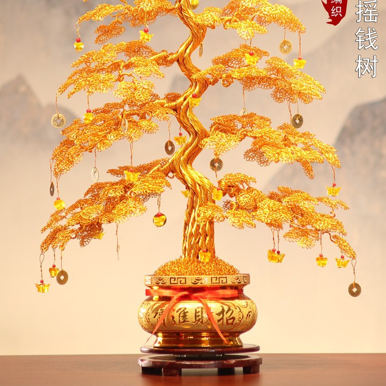 金のなる木手織り金のなる木工芸品家の装飾会社新築祝いオープニングギフト装飾品