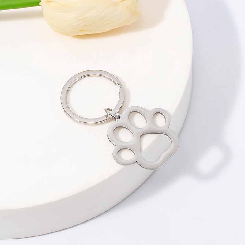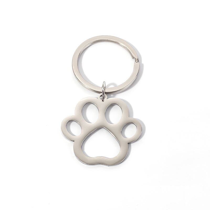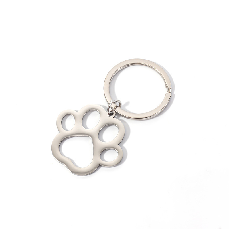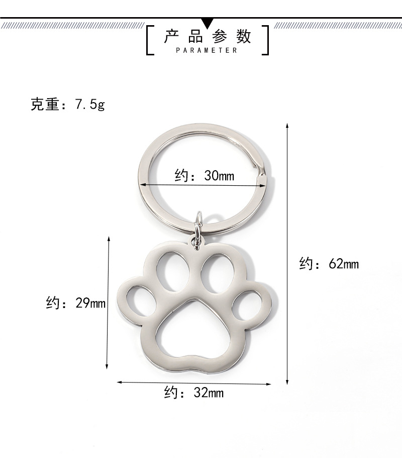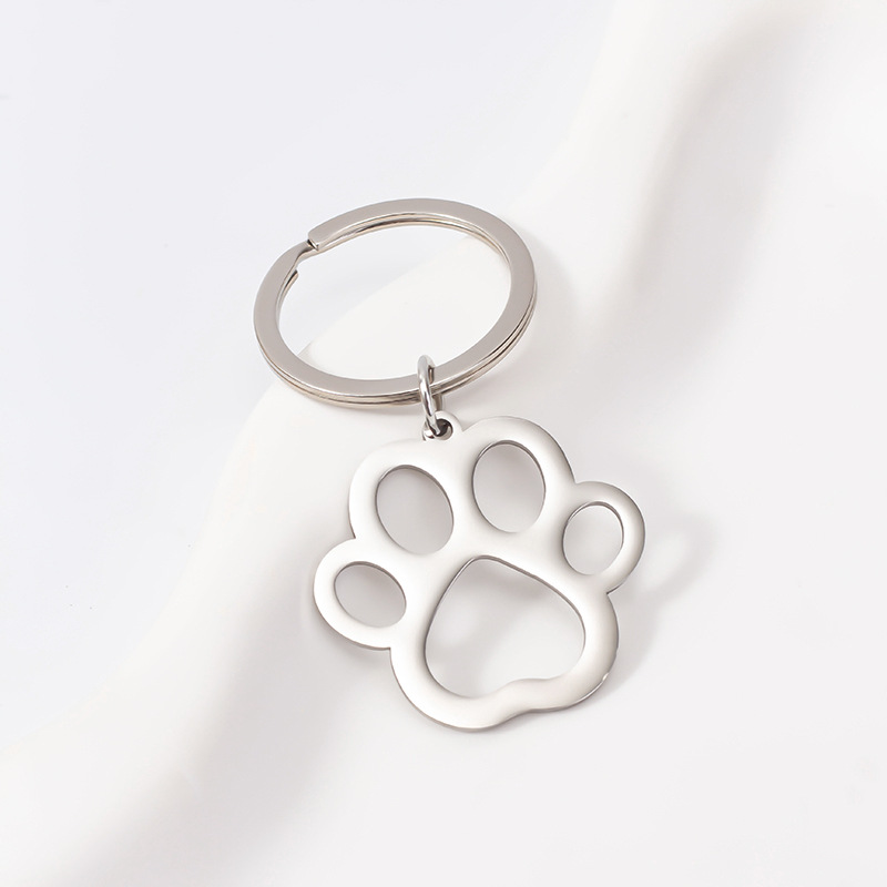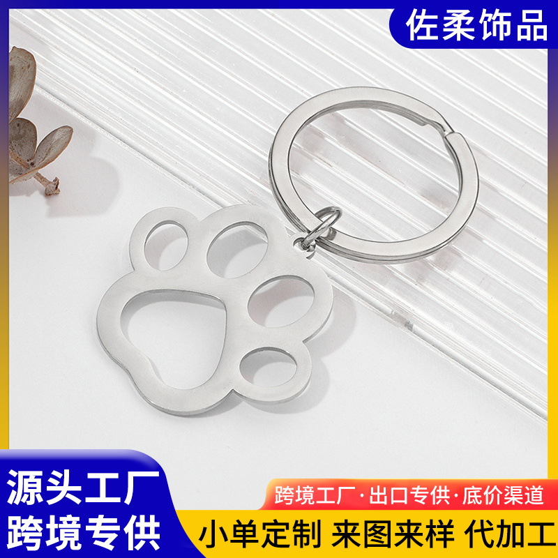 クロスボーダー精密研磨金属ステンレス鋼猫と犬の足キーホルダー DIY 中空太鋼獣の足ペンダントギフト