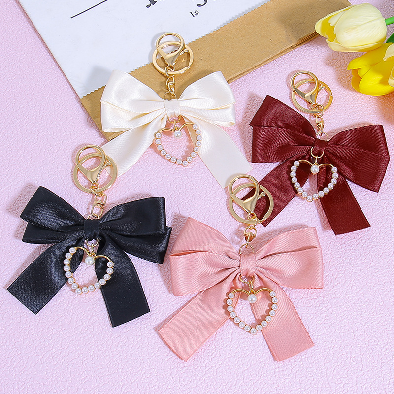 新しい大型パールリボンキーホルダーペンダント手作りカラフルなウェビングノットアクセサリーヘッドフォンバッグ装飾
