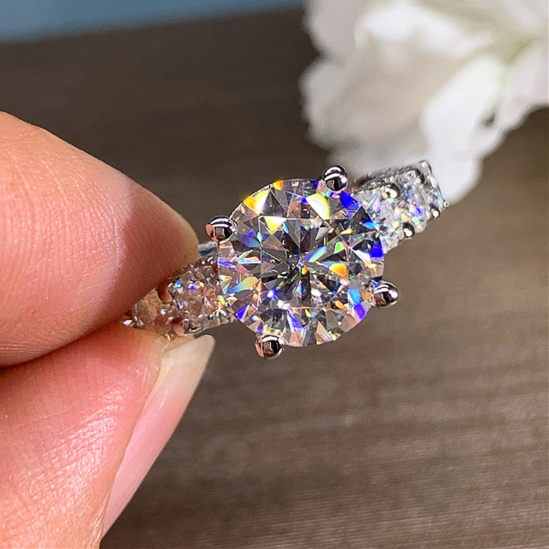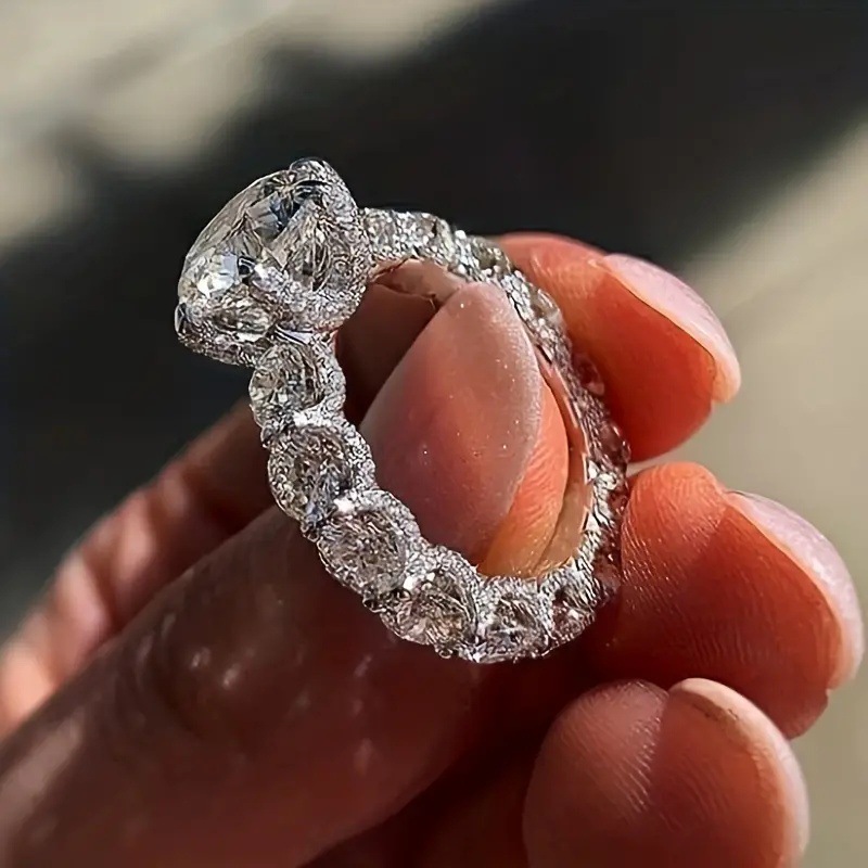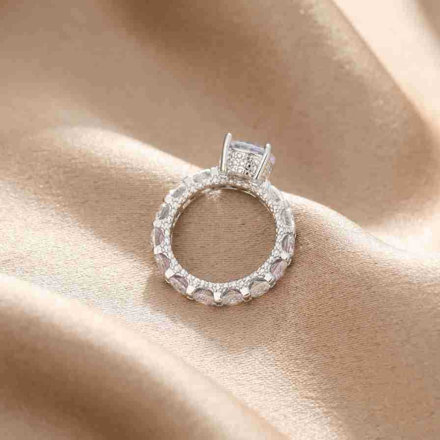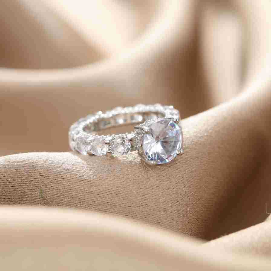 2025新款豪华铜镶锆石戒指女四爪订婚宴会指环配饰手饰时尚百搭