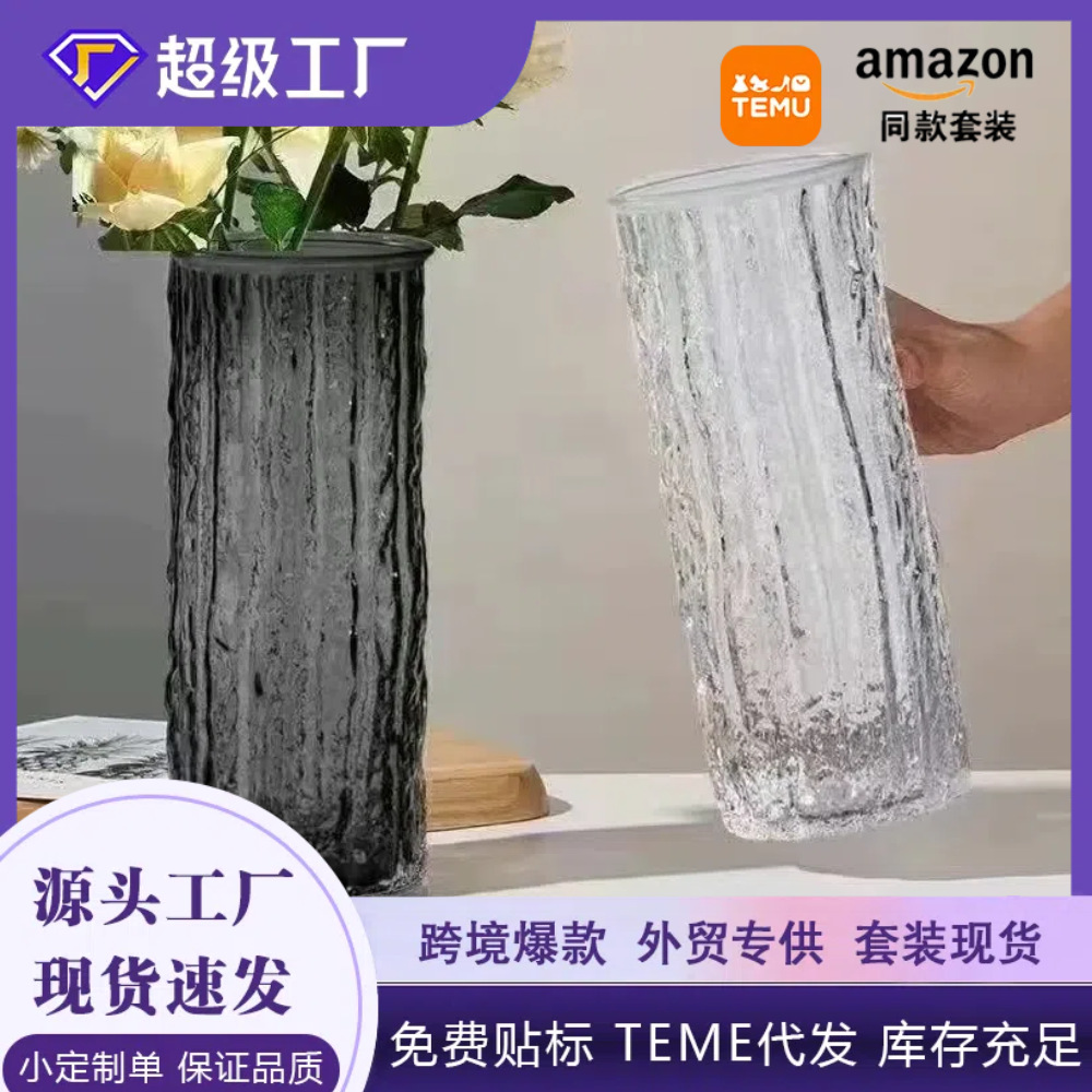 送料無料花瓶高価値氷河ライト高級ハイエンド装飾品リビングルームフラワーアレンジメント花クリエイティブ装飾透明水文化