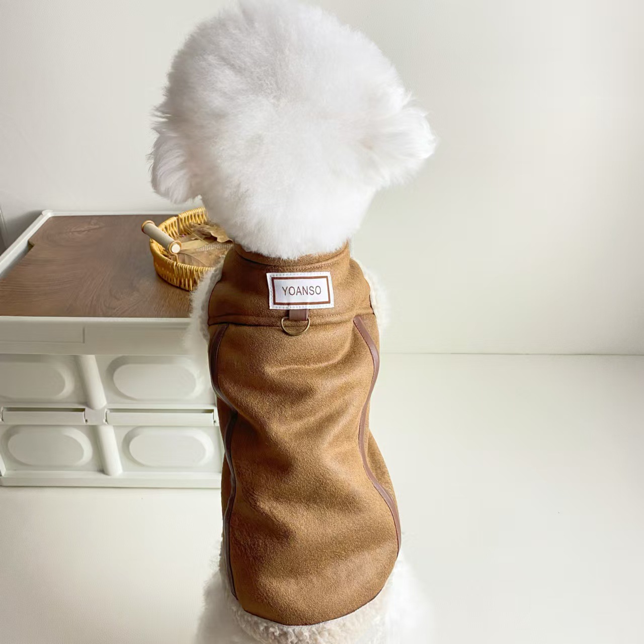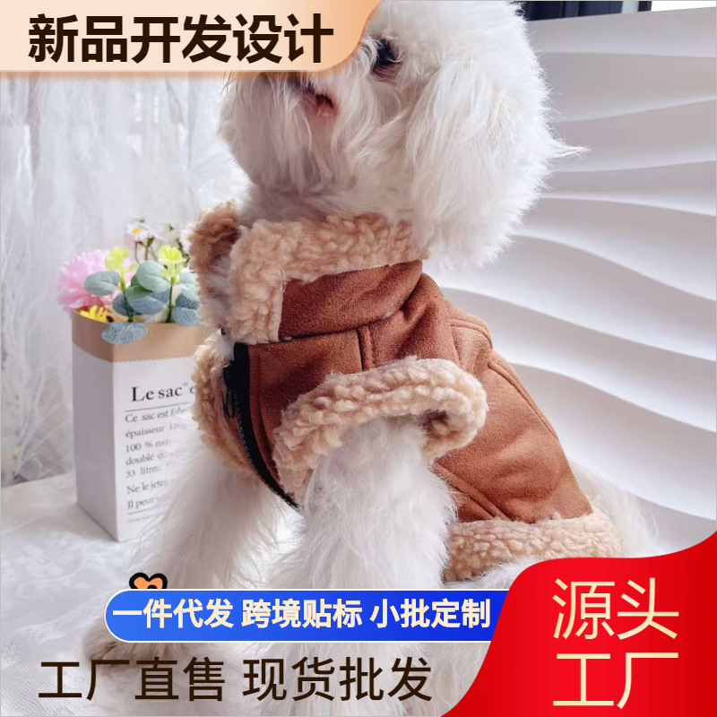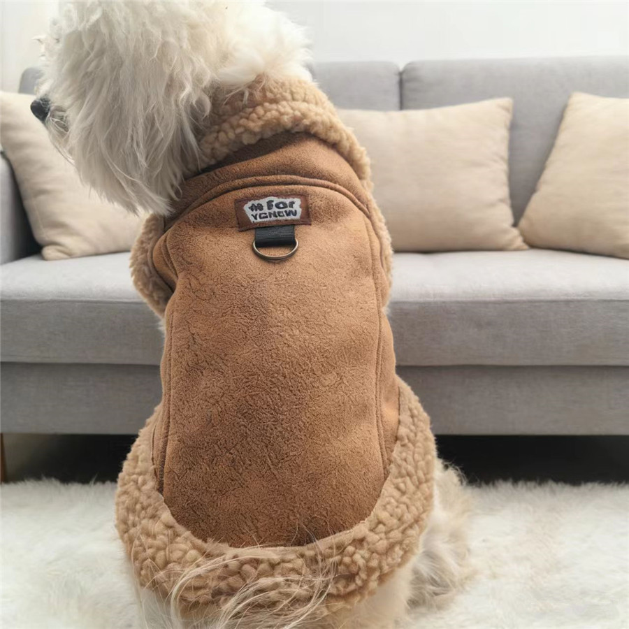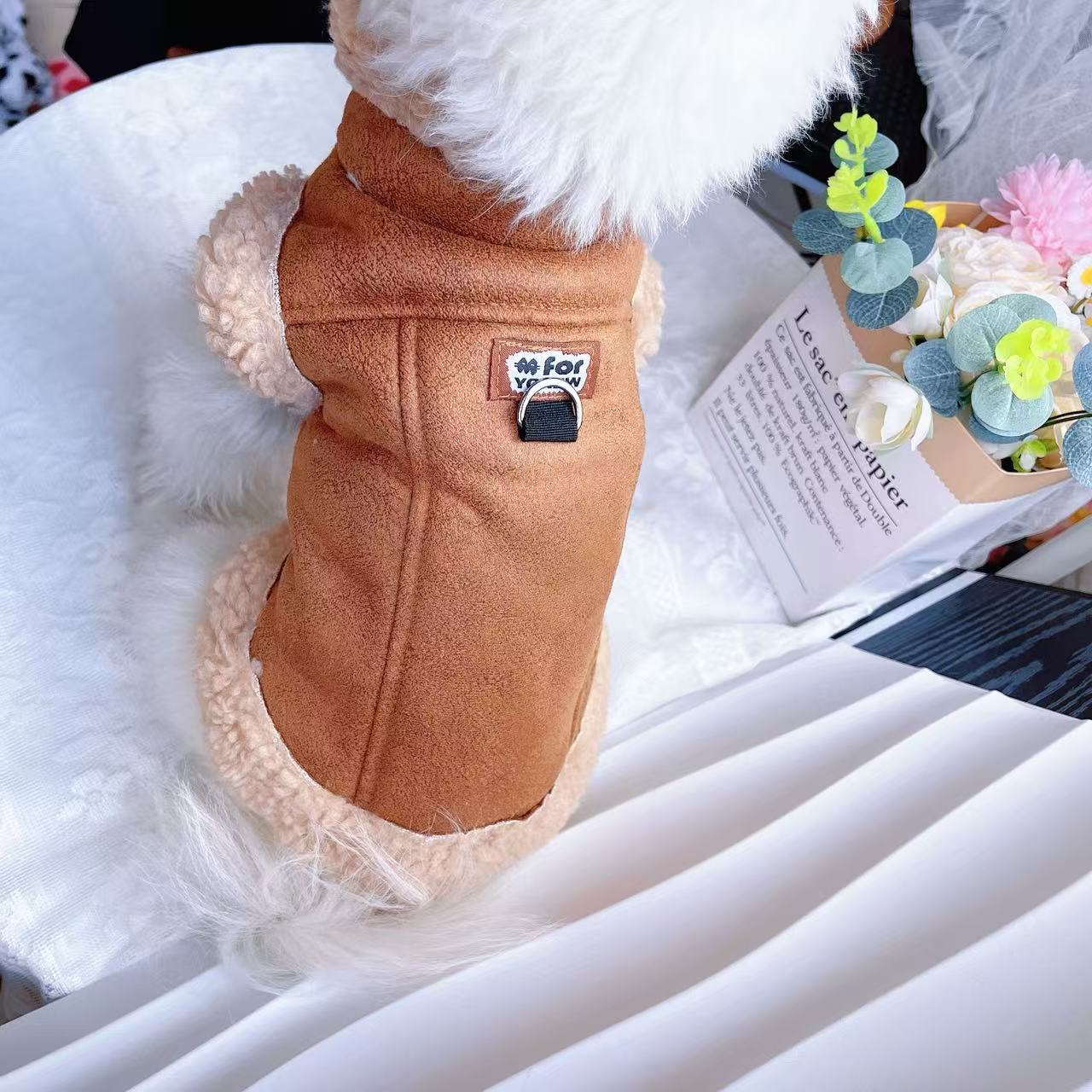 子犬プラスベルベットコットンコート秋と冬の新しいピーチスキンベストテディビションベルトトラクションバックルペット犬服