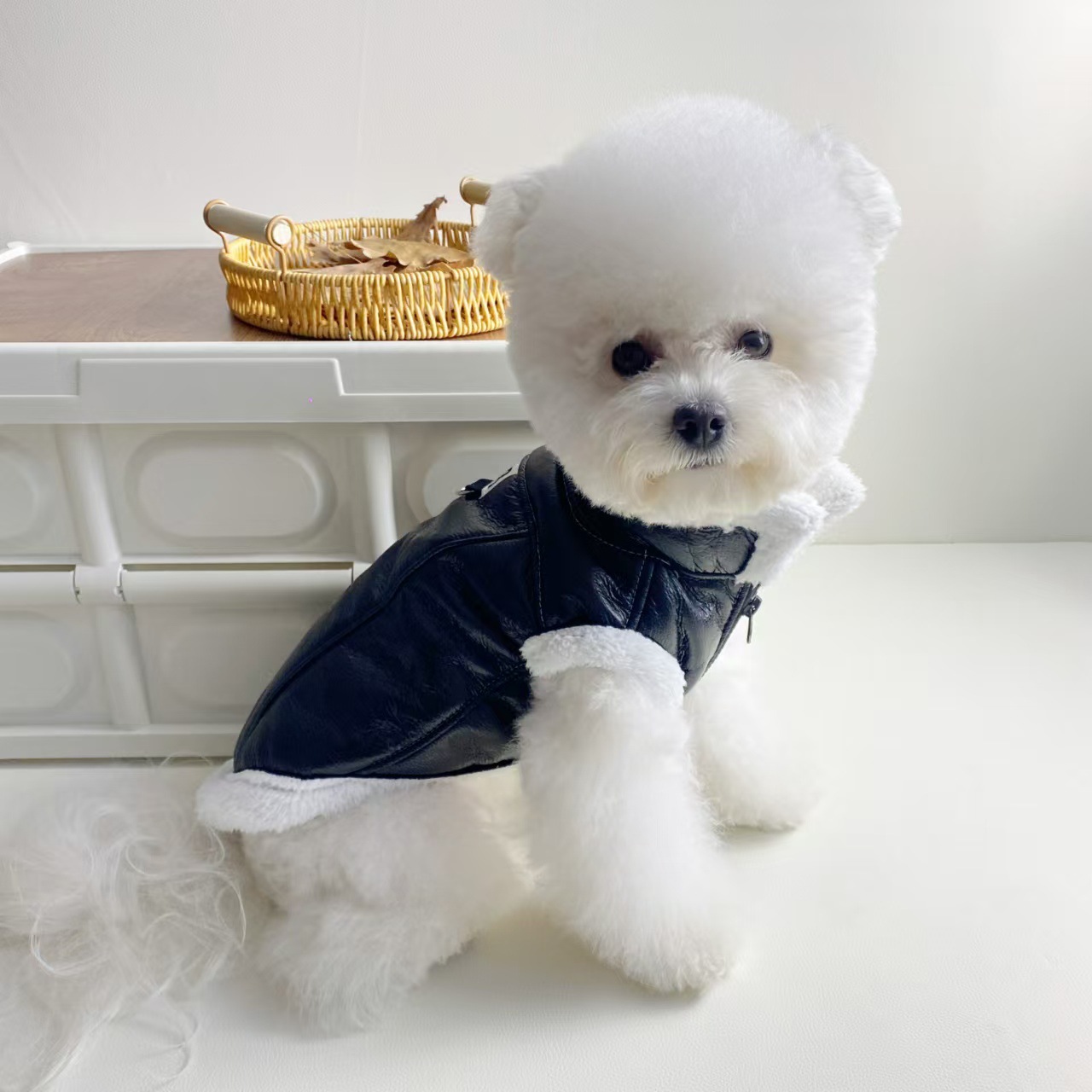 犬服 冬服 テディ シュナウザー ポメラニアン ビション マルチーズ ヨークシャー レザー服 厚手 ノースリーブ ベスト