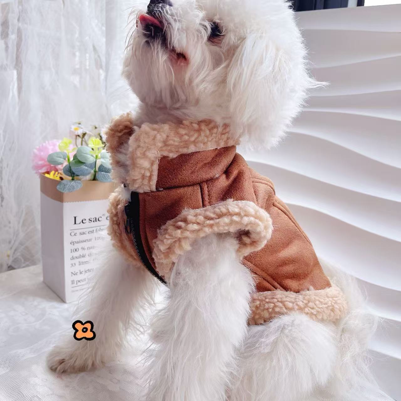 宠物加绒马甲狗狗衣服皮毛一体泰迪猫咪雪纳瑞比熊小型犬秋冬装