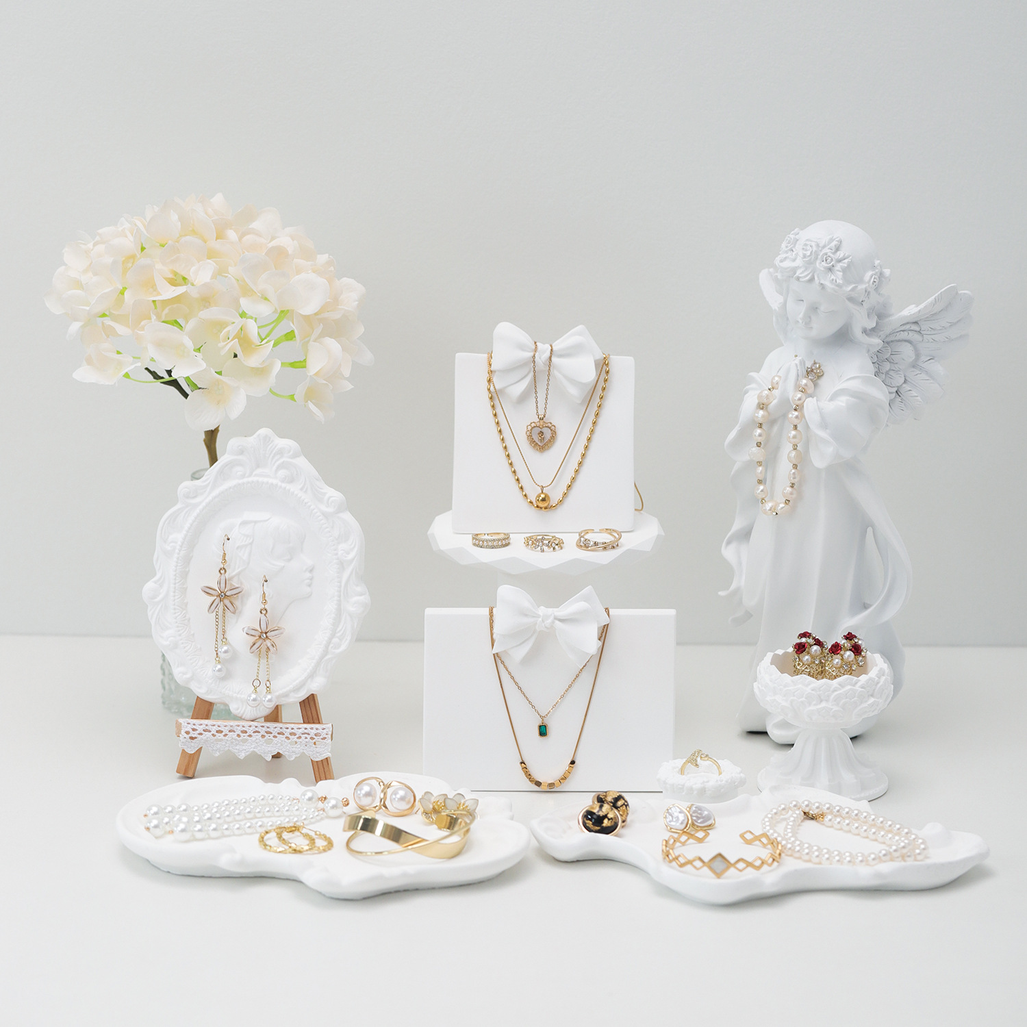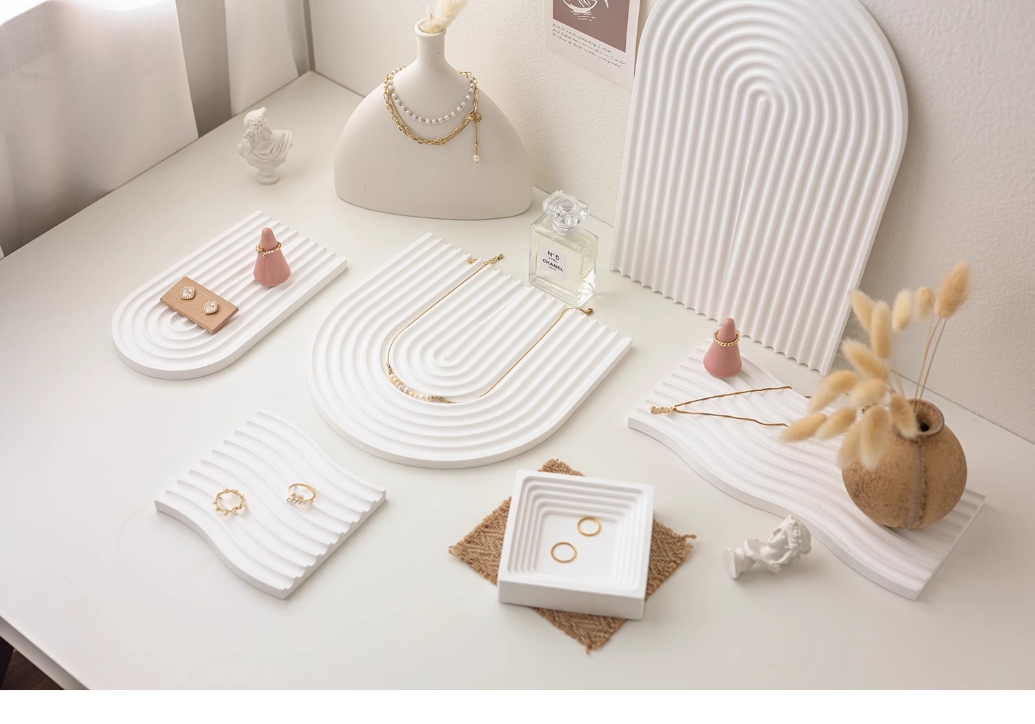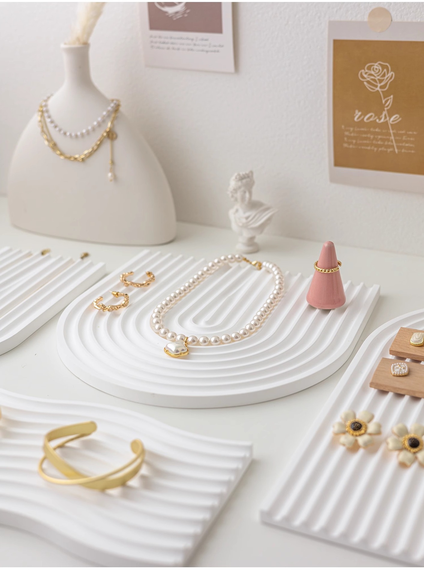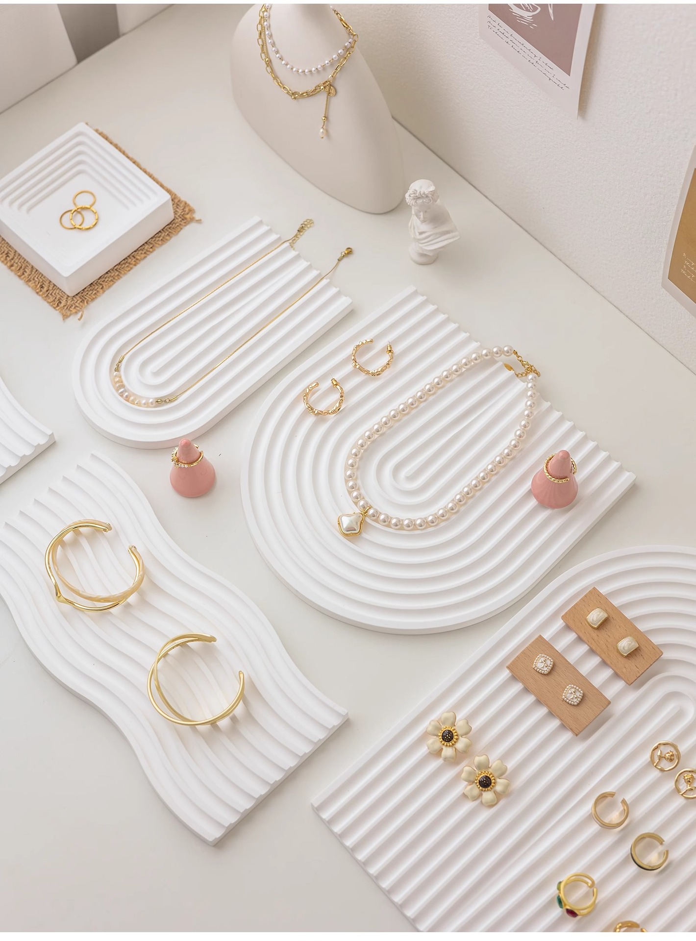 シンプルなジュエリートレイ白い石膏アクセサリー展示トレイジュエリー店舗陳列写真撮影道具雰囲気装飾