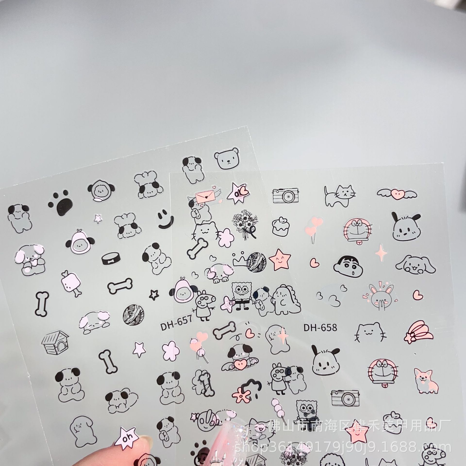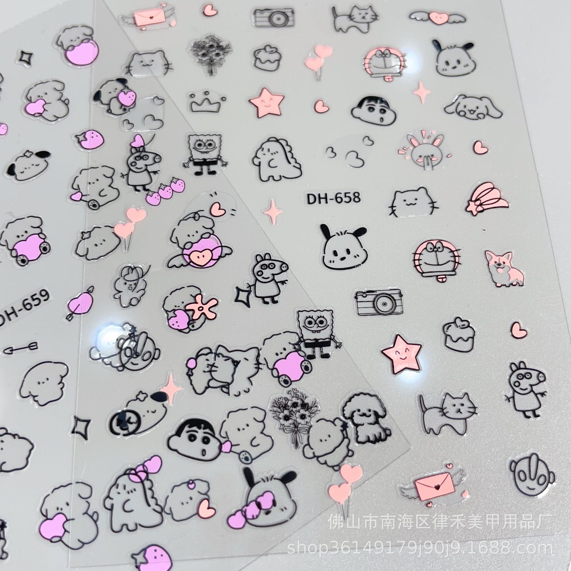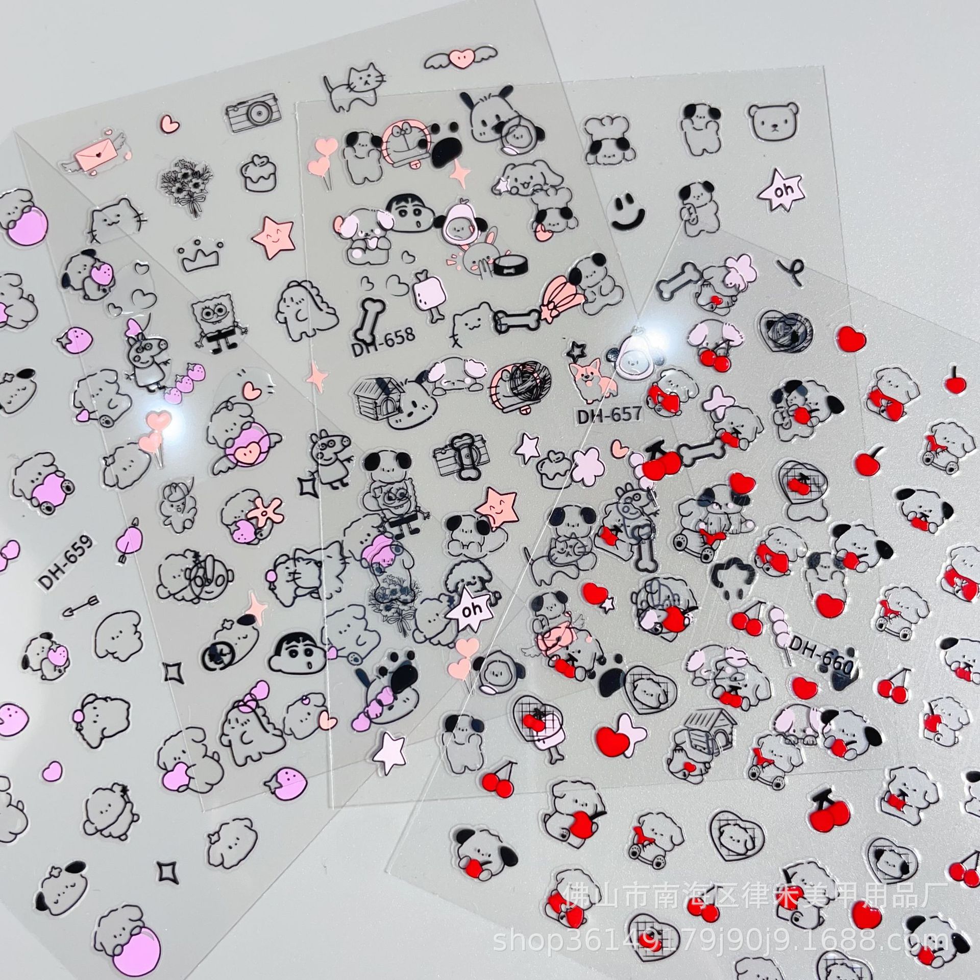 新しい2dネイルステッカー漫画かわいい犬スポンジ赤ちゃんドラえもん愛かわいい恐竜猫ステッカー