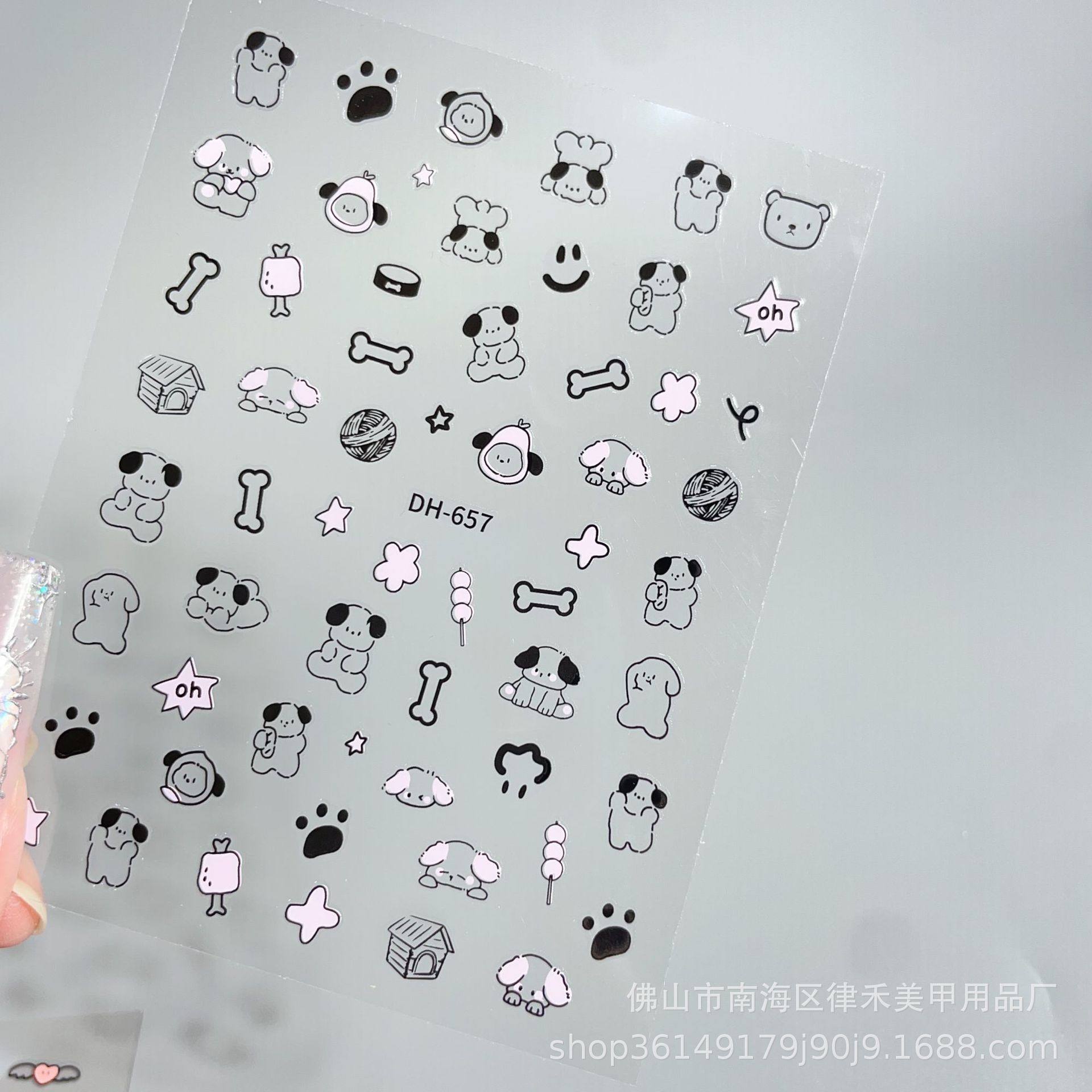 爆発的なかわいい猫子犬ウサギ落書きネイルシール白黒箔押し金2Dアニメ動物爪デカール