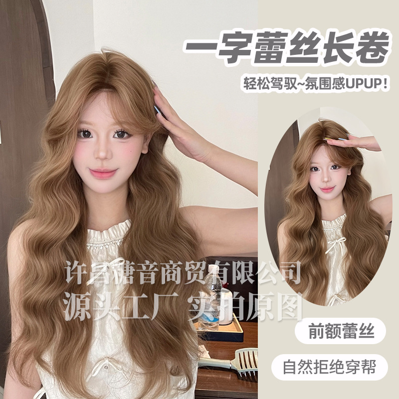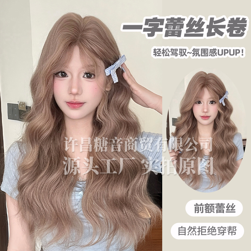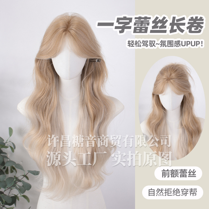 砂糖の音のかつらの女性の日常のネットの赤い長い巻きの髪の夏の新型の自然で甘い1字のレースの全頭カバーのかつら
