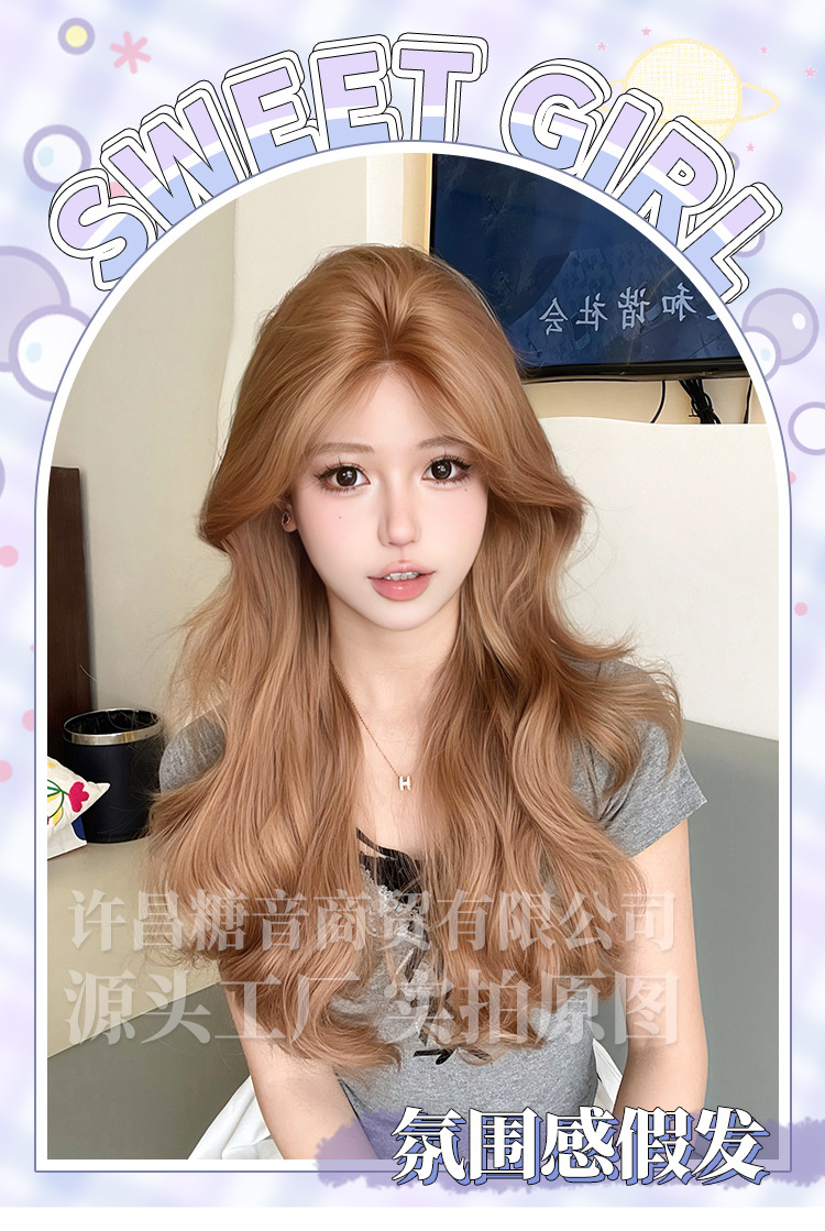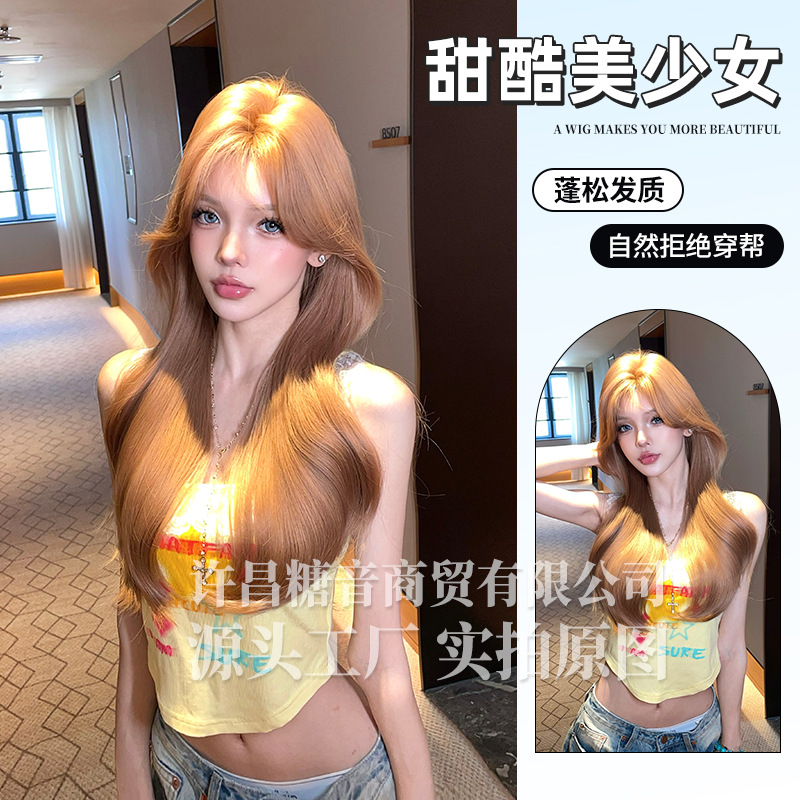 糖音假发女长发微卷日常网红新款韩系自然逼真假发全头套式