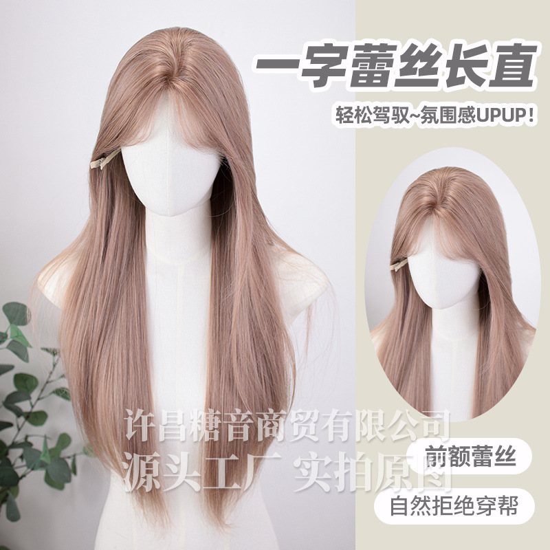 砂糖の音のかつらの夏の新型の女性団の髪の色の1字のレースの長いまっすぐな髪の全体のカバーの自然な丸い顔