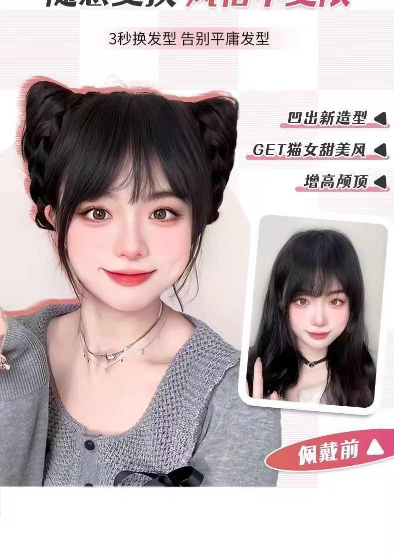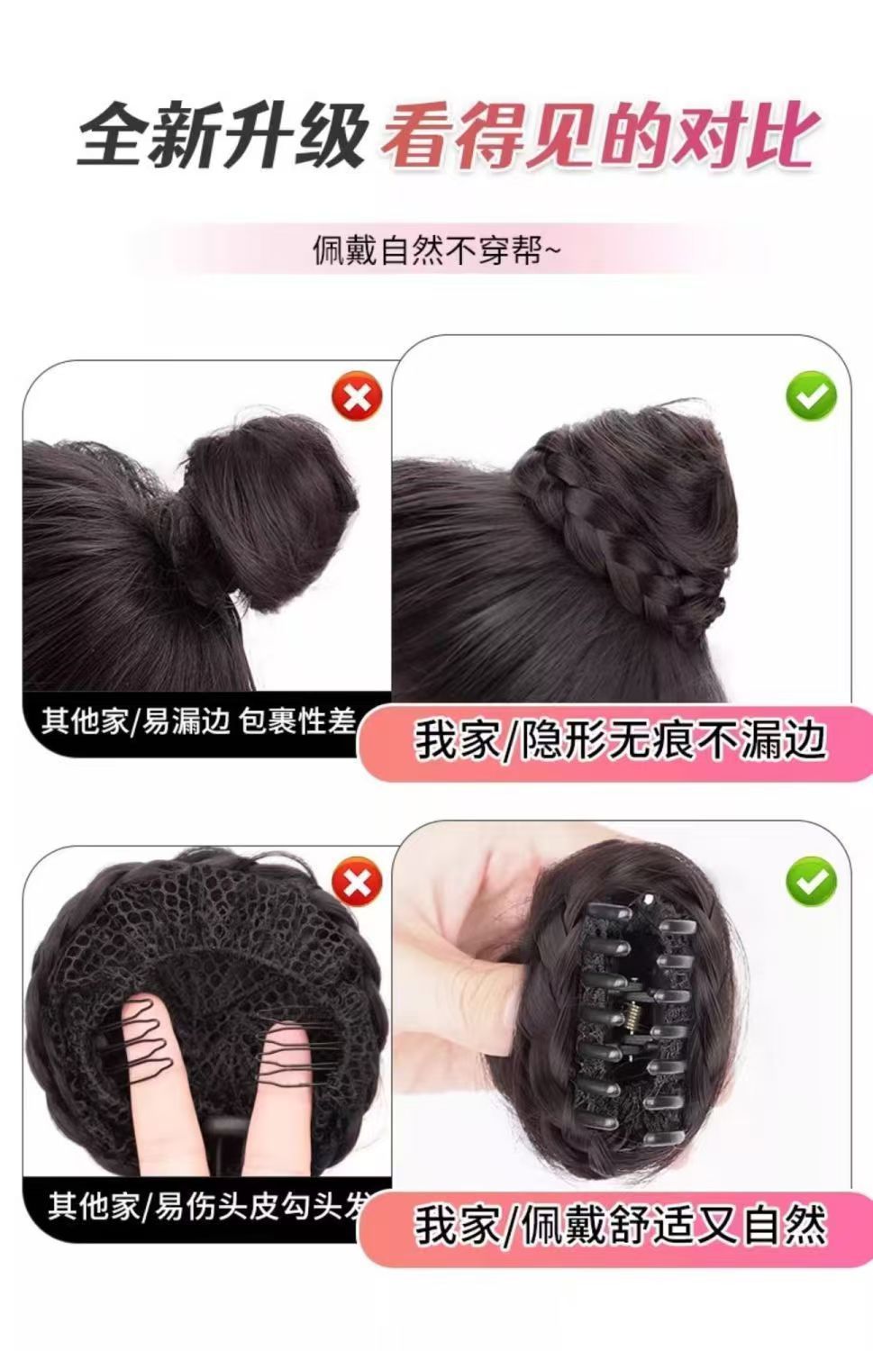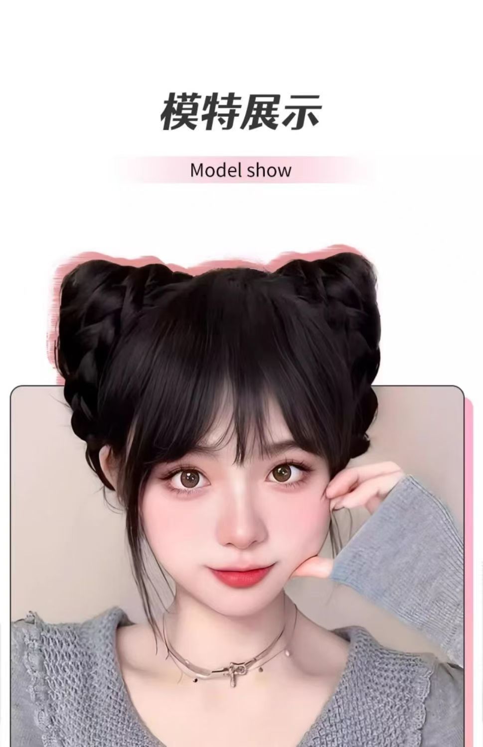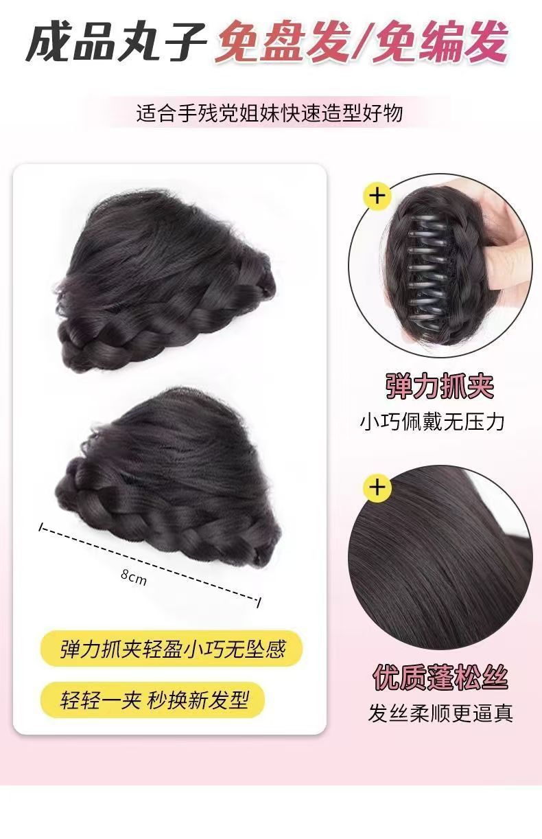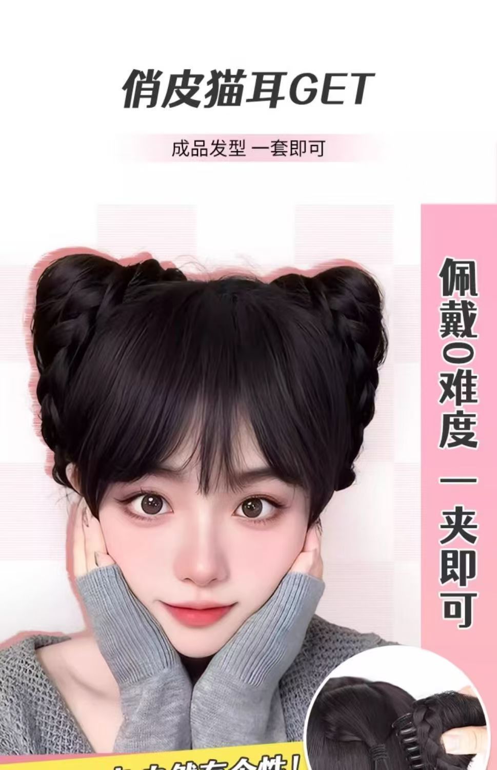 鸿秀优选-升级假发辫子猫耳朵抓夹发包可爱双丸子头发饰盘发花苞