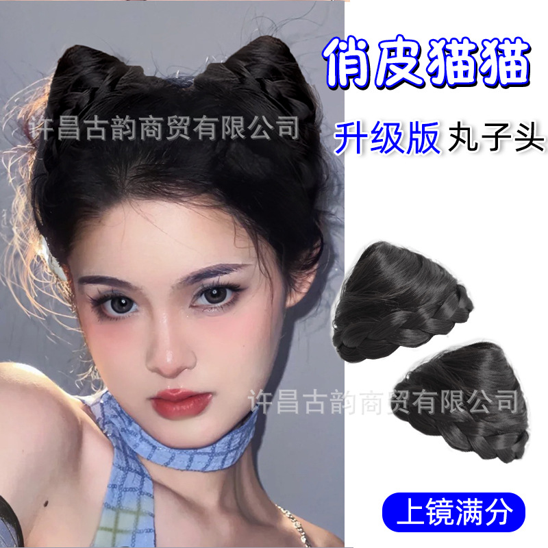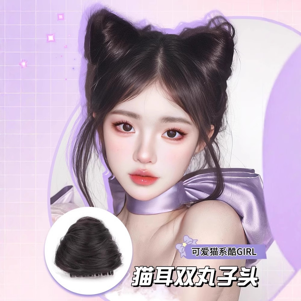 猫耳假发包丸子头假发女盘发增发量蓬松牛角包抓夹式新升级丸子头