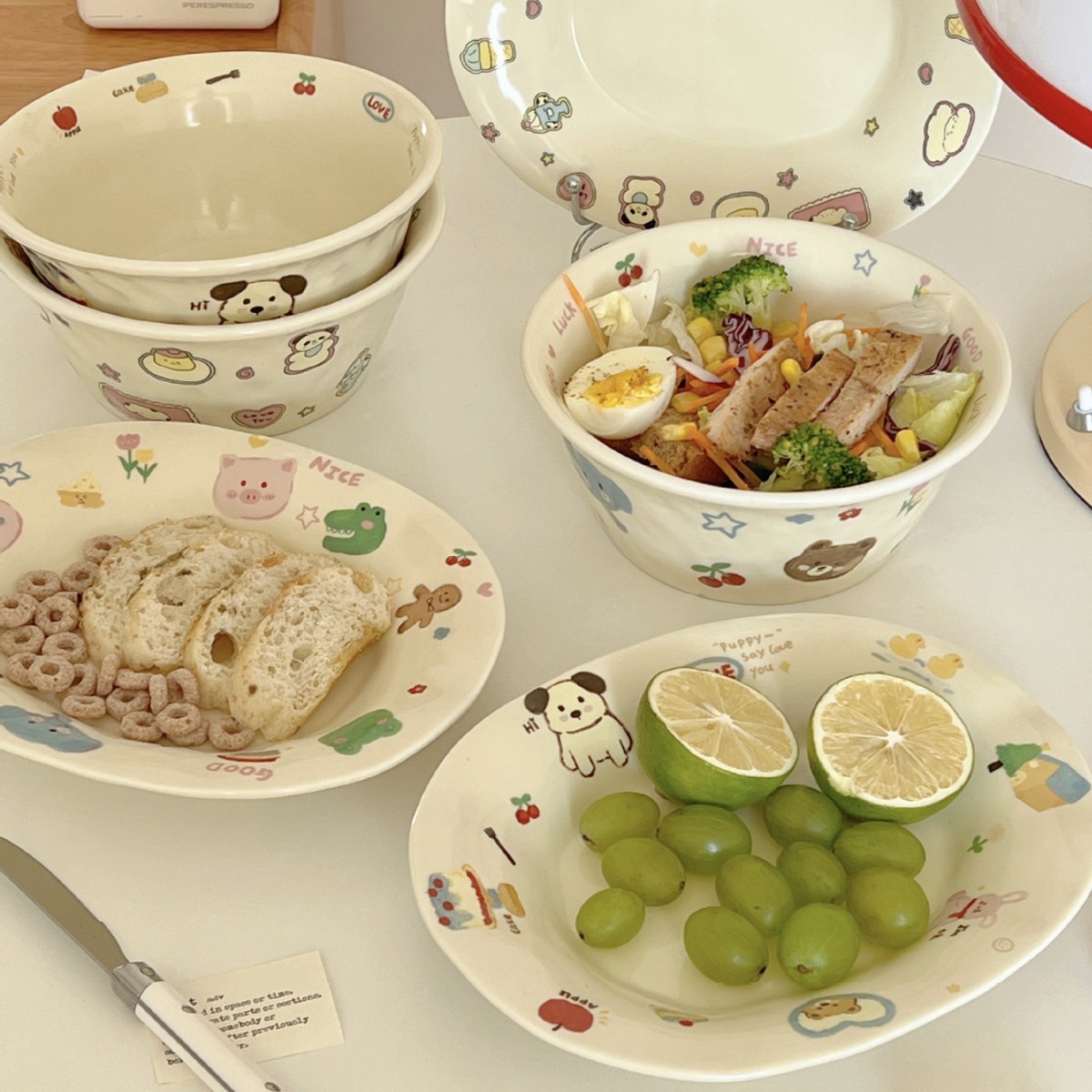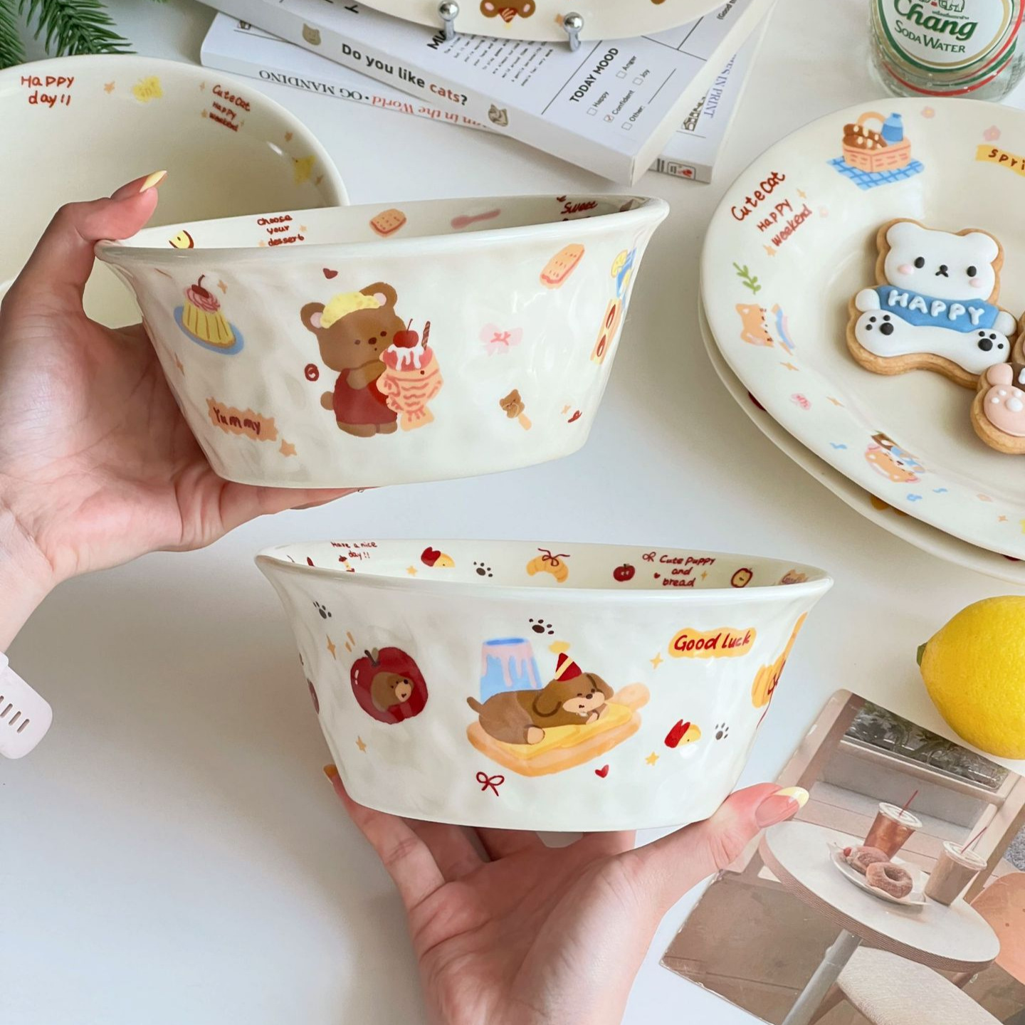 国合ins少女はかわいいアニメ動物陶磁器ボウル大容量家庭用陶磁器食器朝食ボウルを萌えた