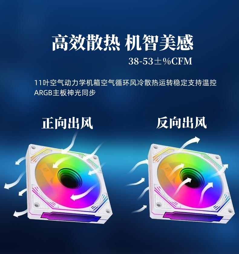プリズム4pro積み木ファンargbパソコン本体神光スマート温度制御幻彩静音ケース放熱器