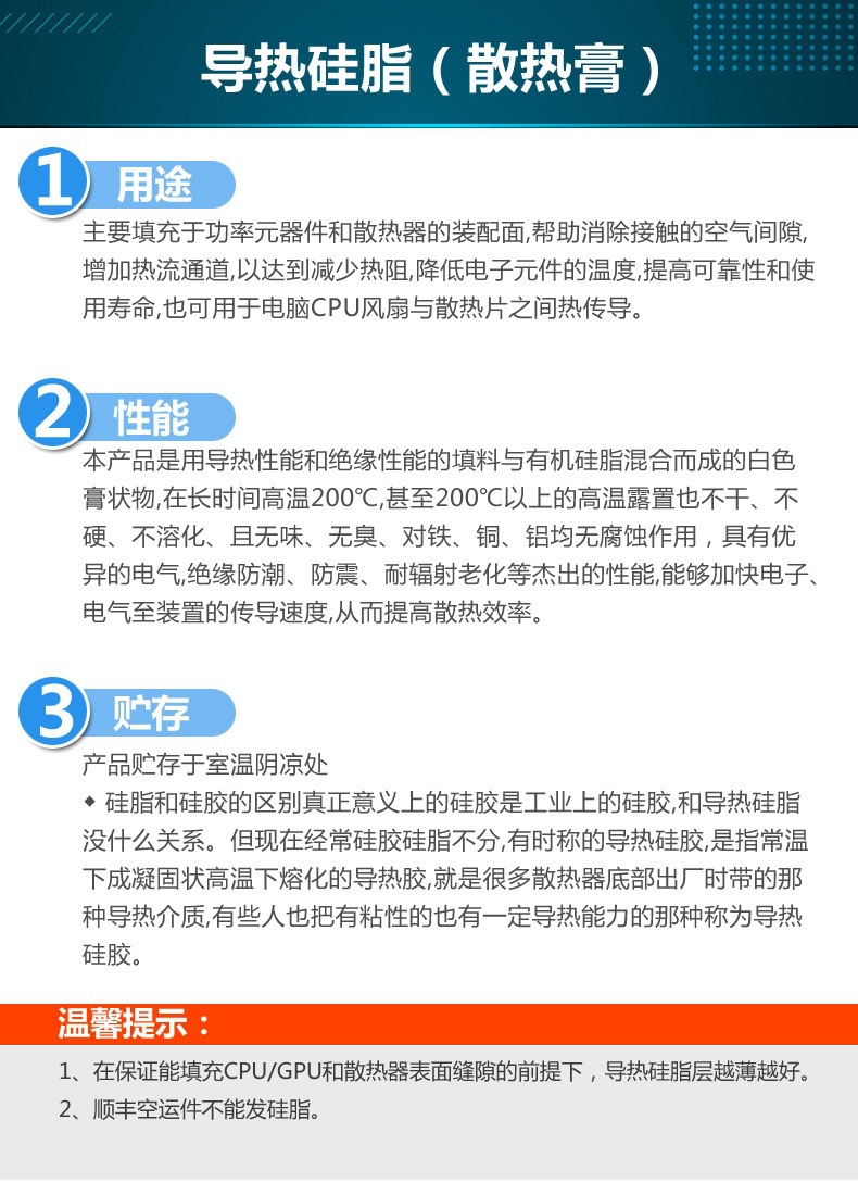 导热硅脂硅胶CPU耐高温导热膏电磁炉散热笔记本电脑显卡LED专用胶