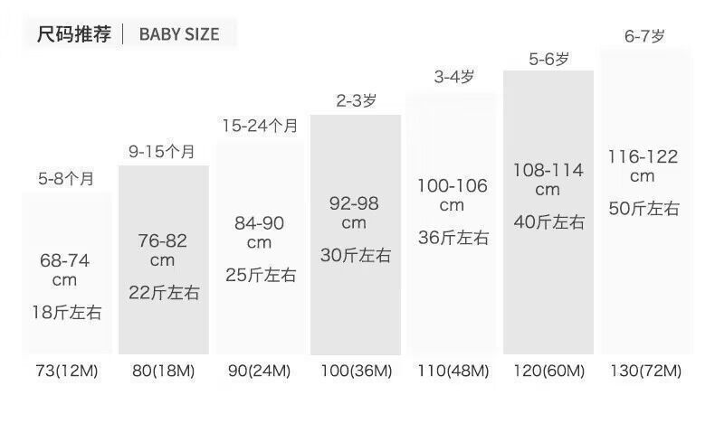 80ヤード、約1歳(8.5-10kg),90ヤード 1~2歳(10-12kg),100ヤード 2~3歳(12-14.5kg),110ヤード 3~4歳(14.5-17.5kg),120ヤード 4~5歳(17-20kg)