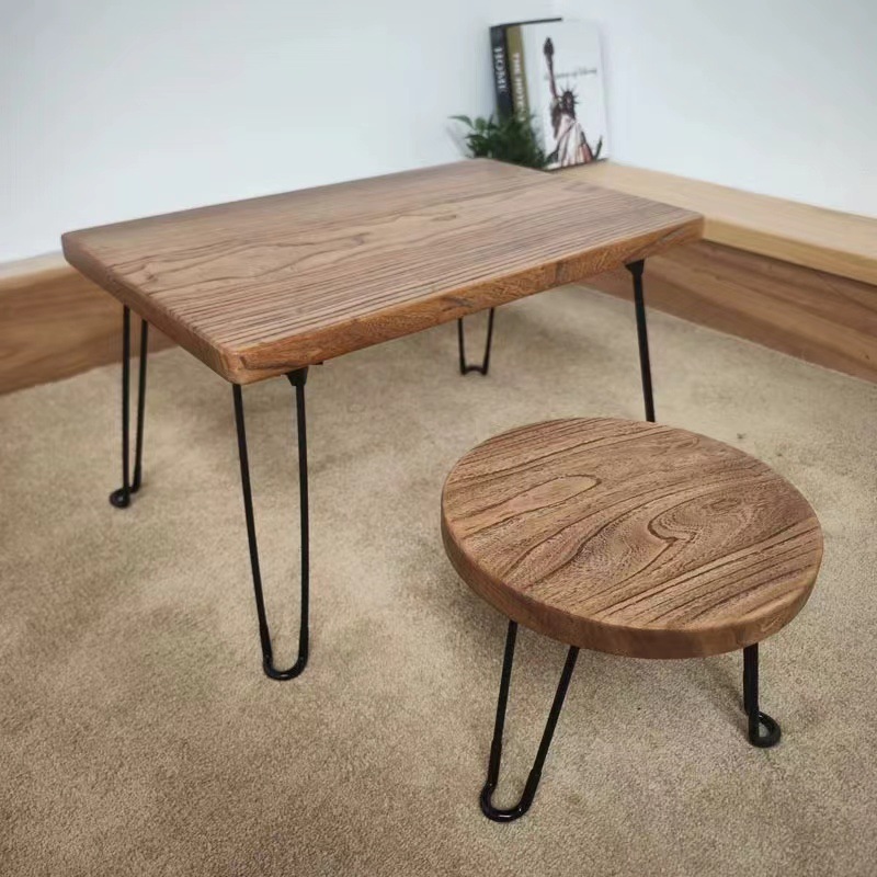 家用小型シンプルな机鉄脚古い板茶卓