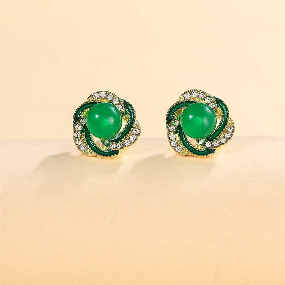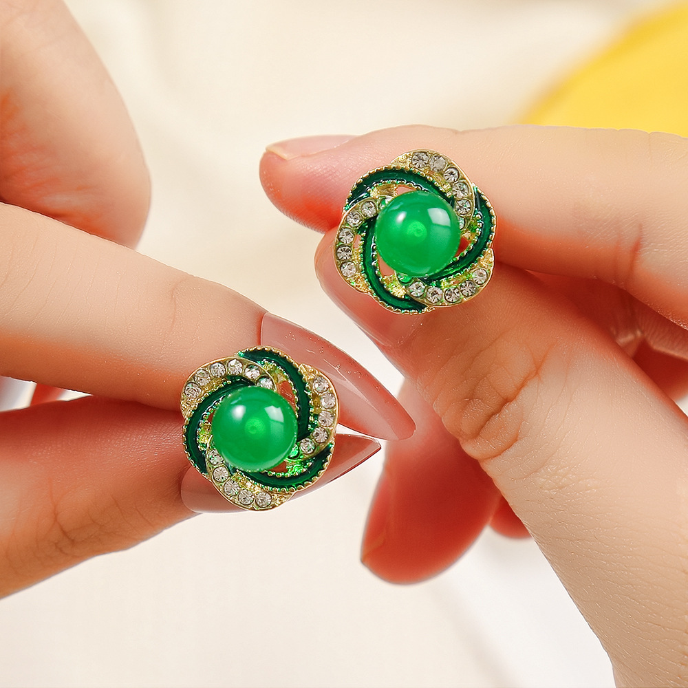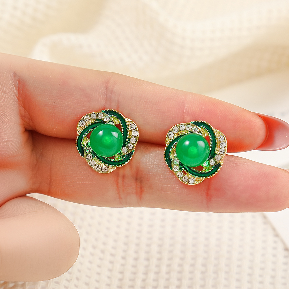 2024新型韓国版グリーン真珠ピアス女性の洗練された小さなイヤリング高級感優雅な気質イヤリングアクセサリー