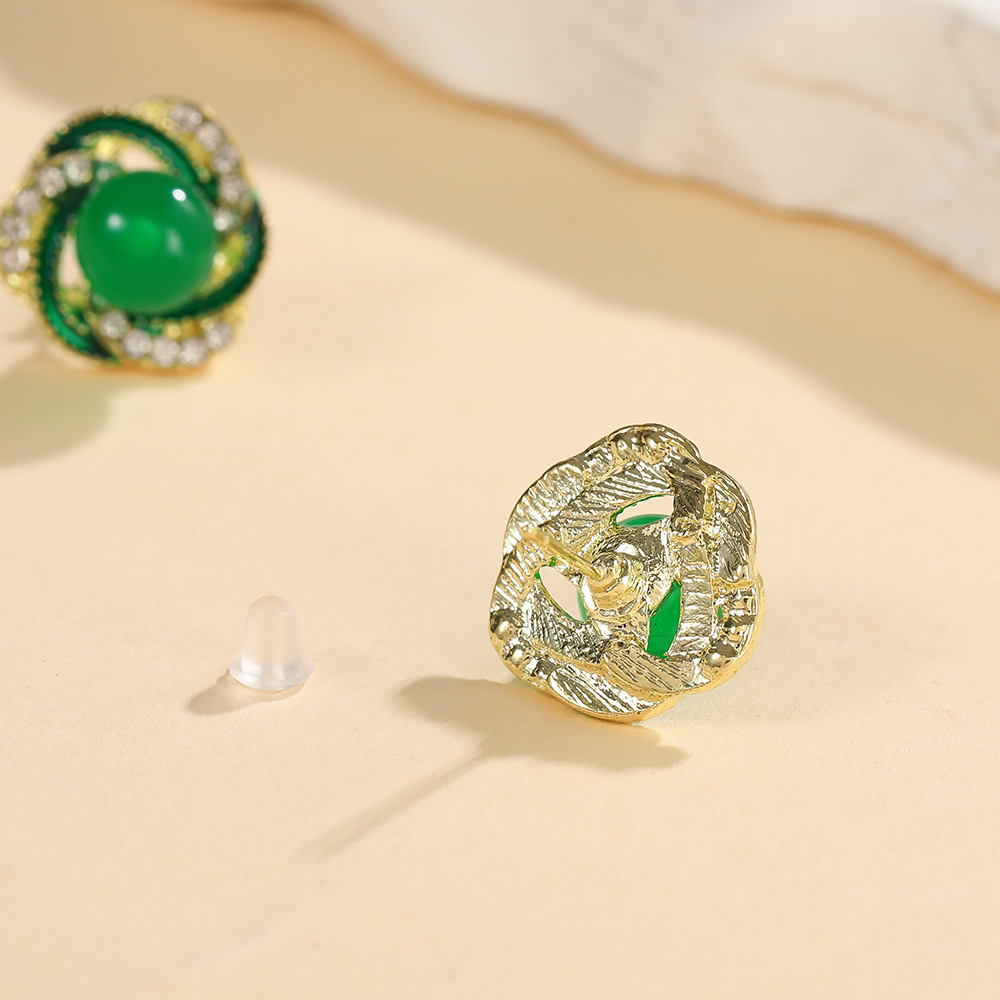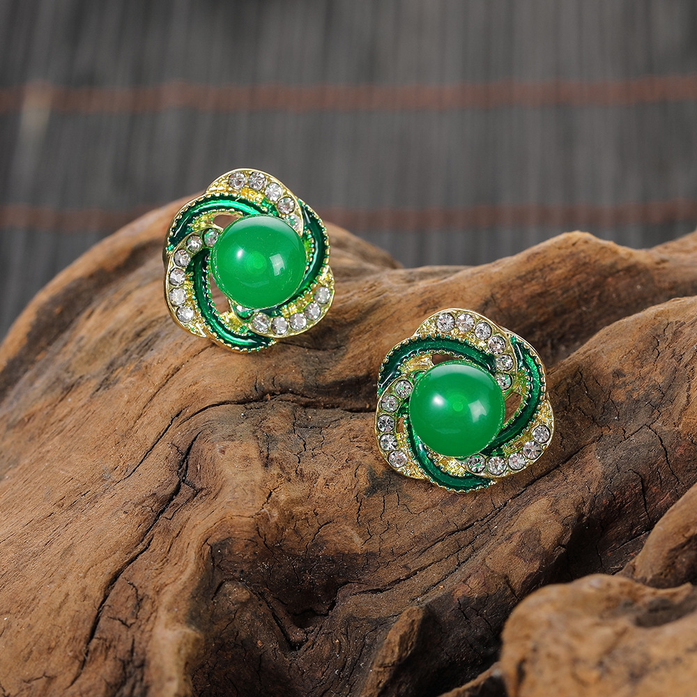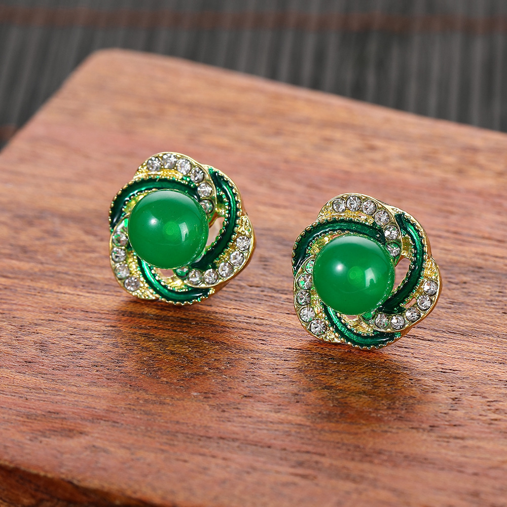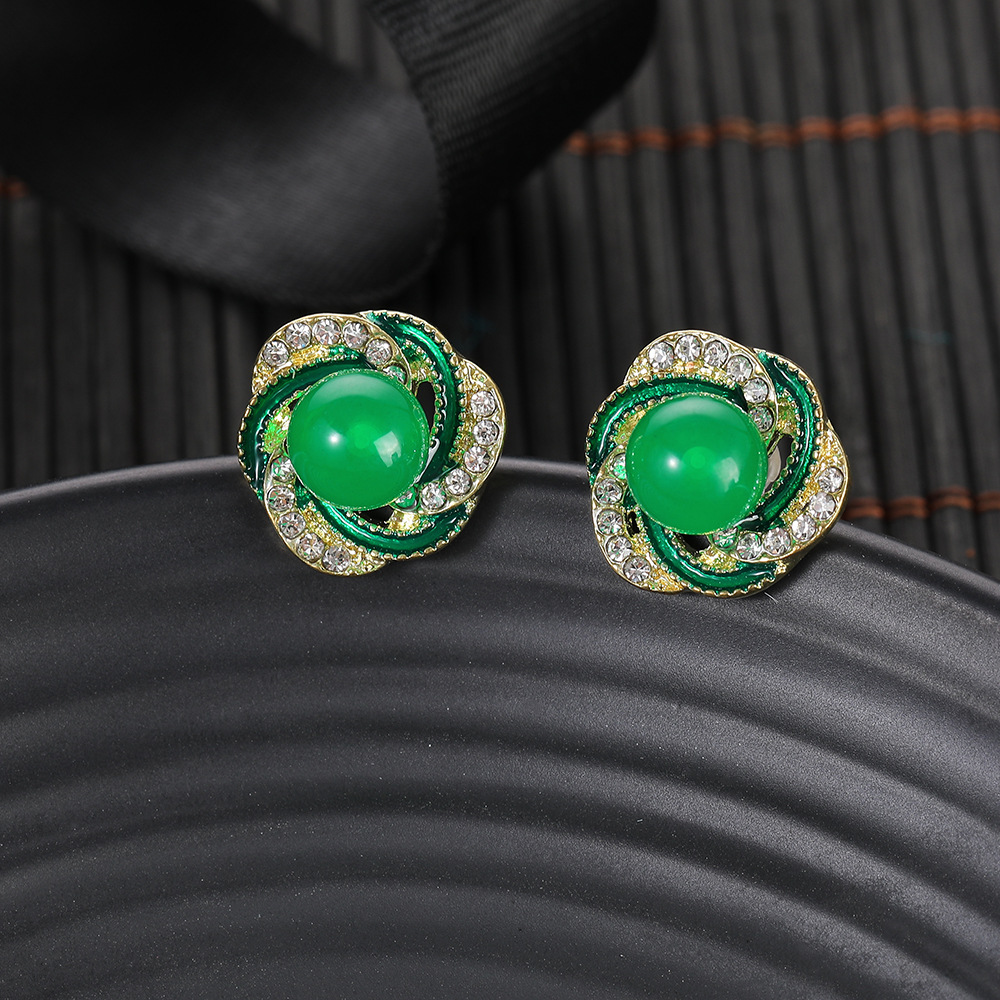 2024新型韓国版グリーン真珠ピアス女性の洗練された小さなイヤリング高級感優雅な気質イヤリングアクセサリー
