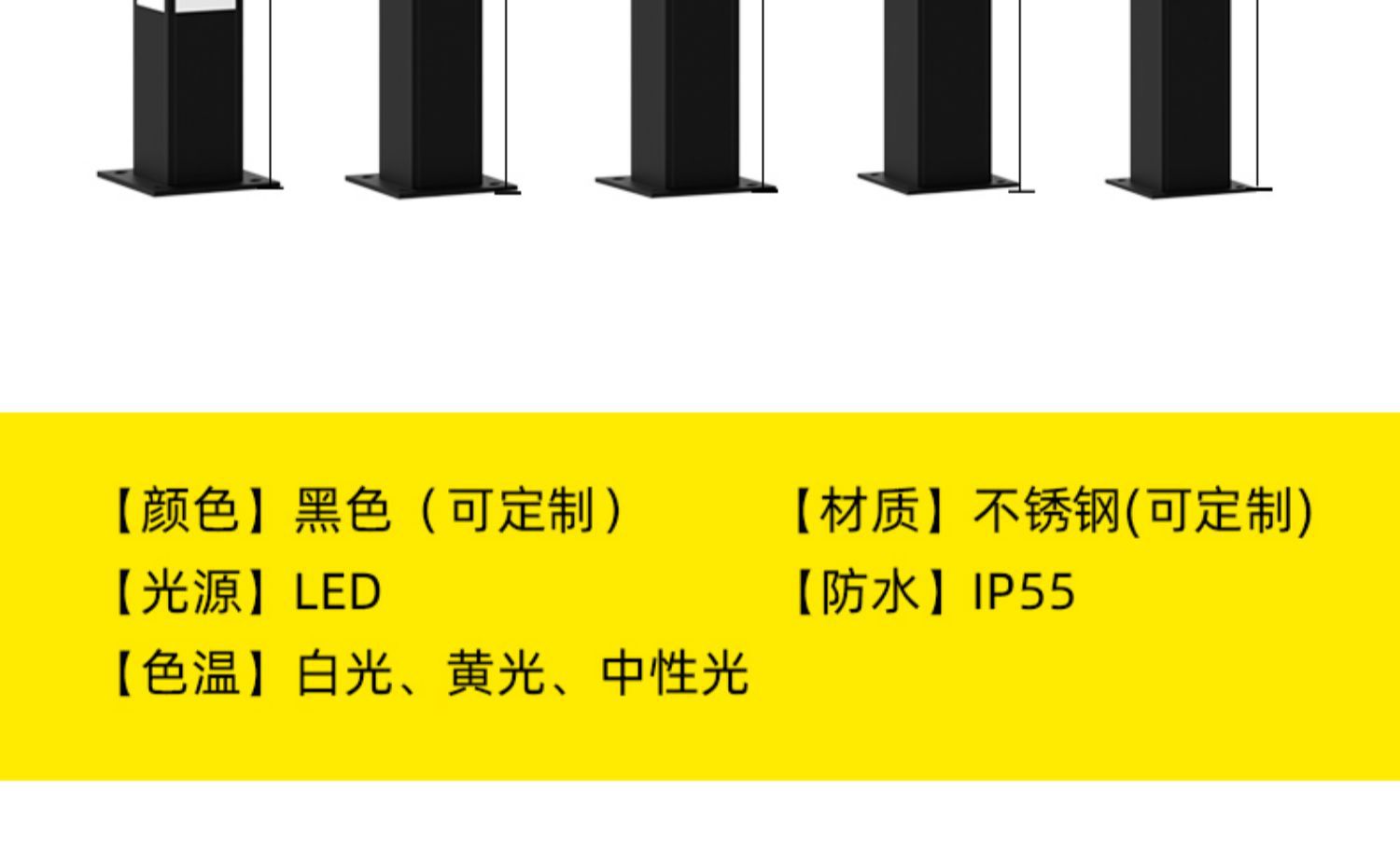 方形景観灯柱3メートルアルミ形材ステンレス庭灯芝生灯公園広場区高竿街灯