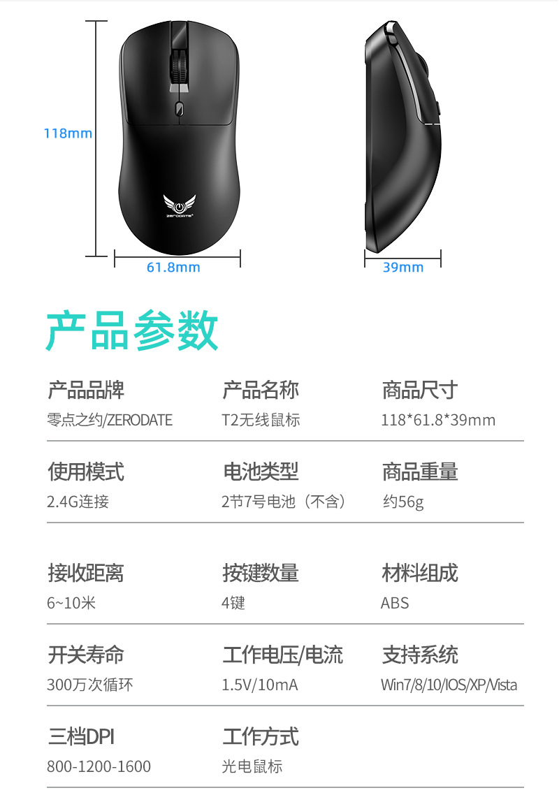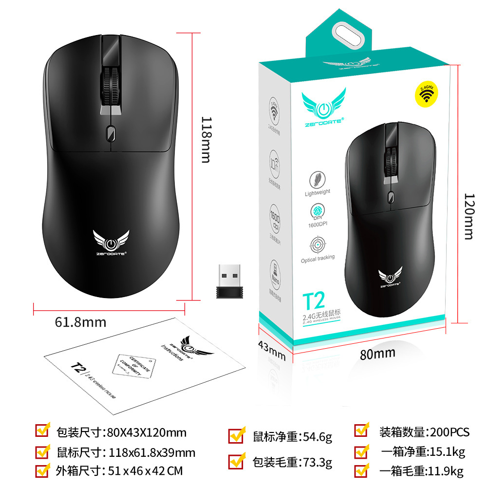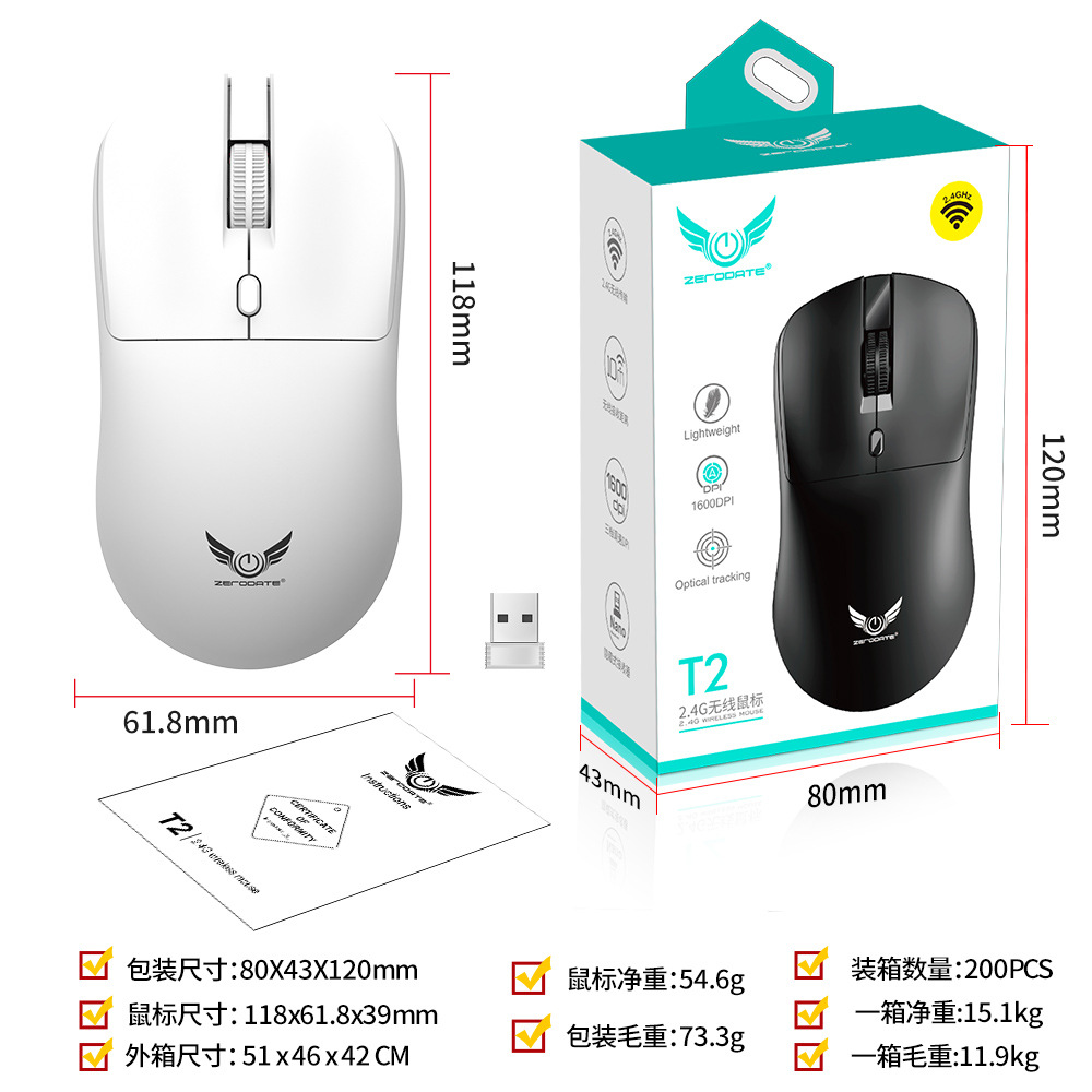 メーカー直供2.4G無線マウスコンピュータノートパソコンオフィスゲーム通用T2無線マウスクロスボーダー