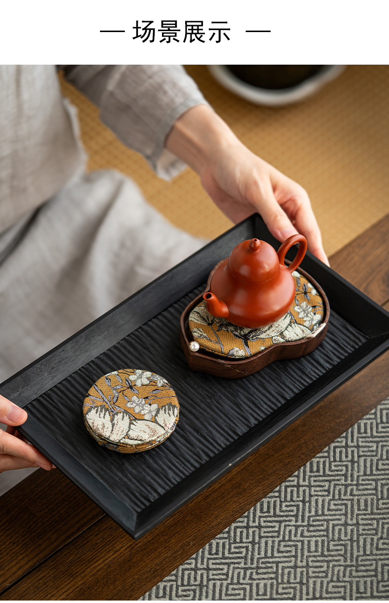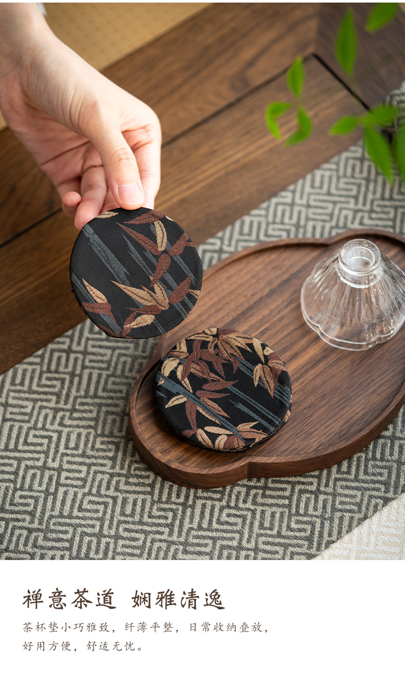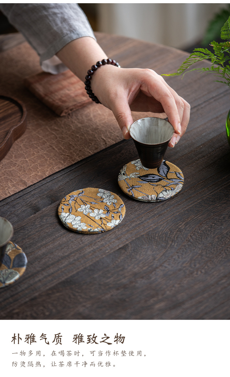 中国式手刺繍ラミー麻カップマットクリエイティブカップ断熱マットレトロ茶道布芸茶器部品