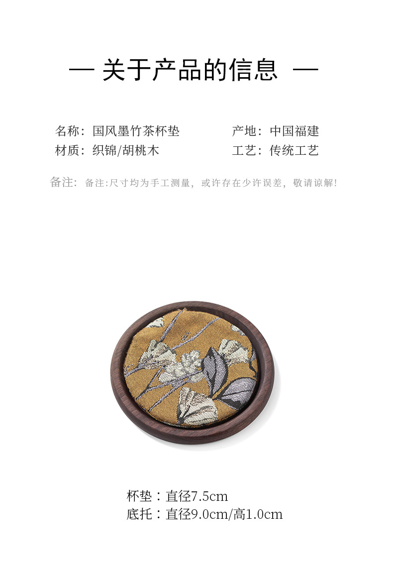 仕様 織錦コースター-玉蘭,織錦コースター-墨竹,胡桃の丸いコースター,胡桃木織錦コースター-玉蘭,胡桃木織錦コースター-墨竹