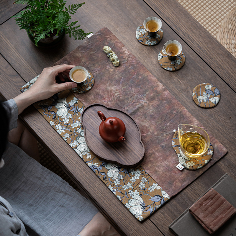 ハイエンド防水テーブル旗錦織スエード茶席茶道中国式禅意茶旗茶テーブル布西陣織テーブルマット