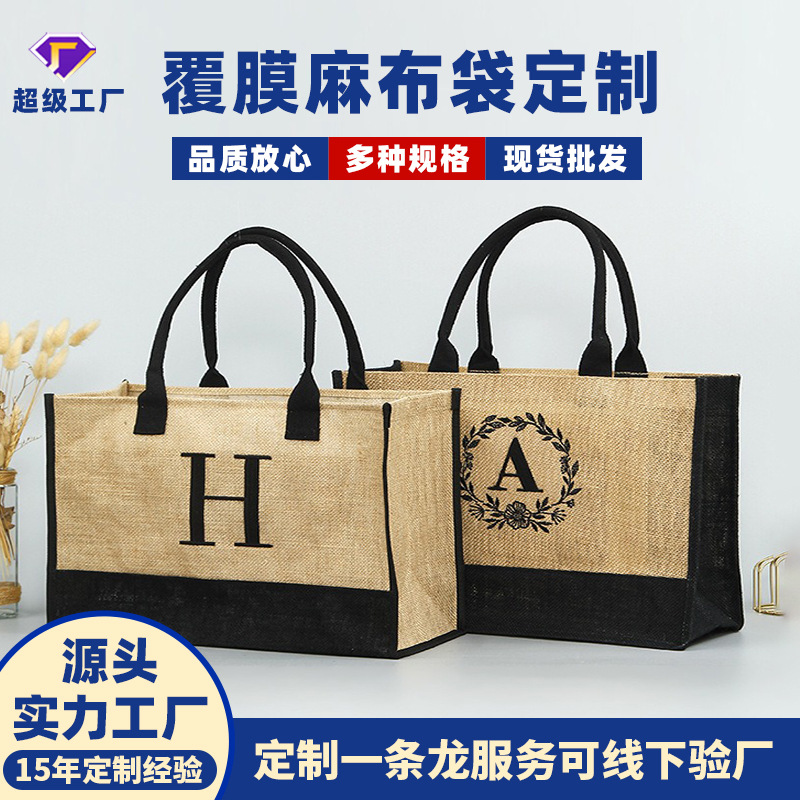 メーカー麻布バッグカスタム実用的な大容量ハンドバッグ北欧文字シンプルトートバッグコーティング黄麻バッグ
