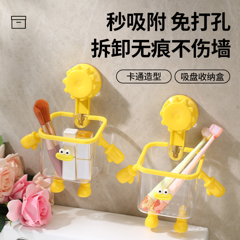 卫浴收纳免打孔吸盘置物架壁挂厕所卫生间洗手台浴室擦脸巾收纳盒