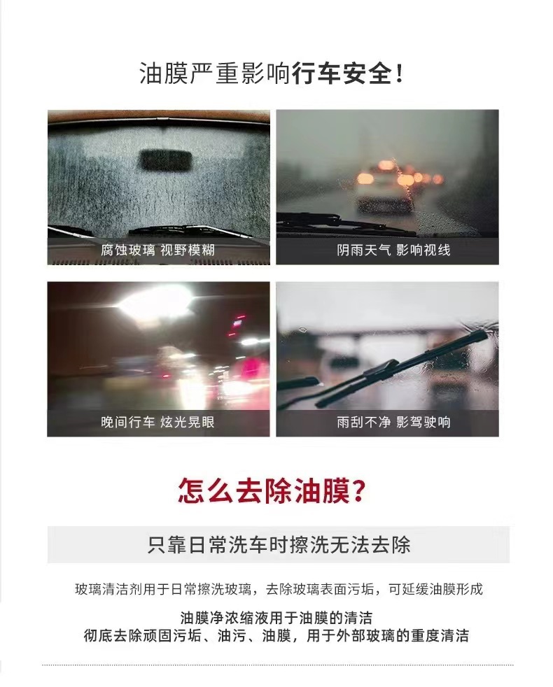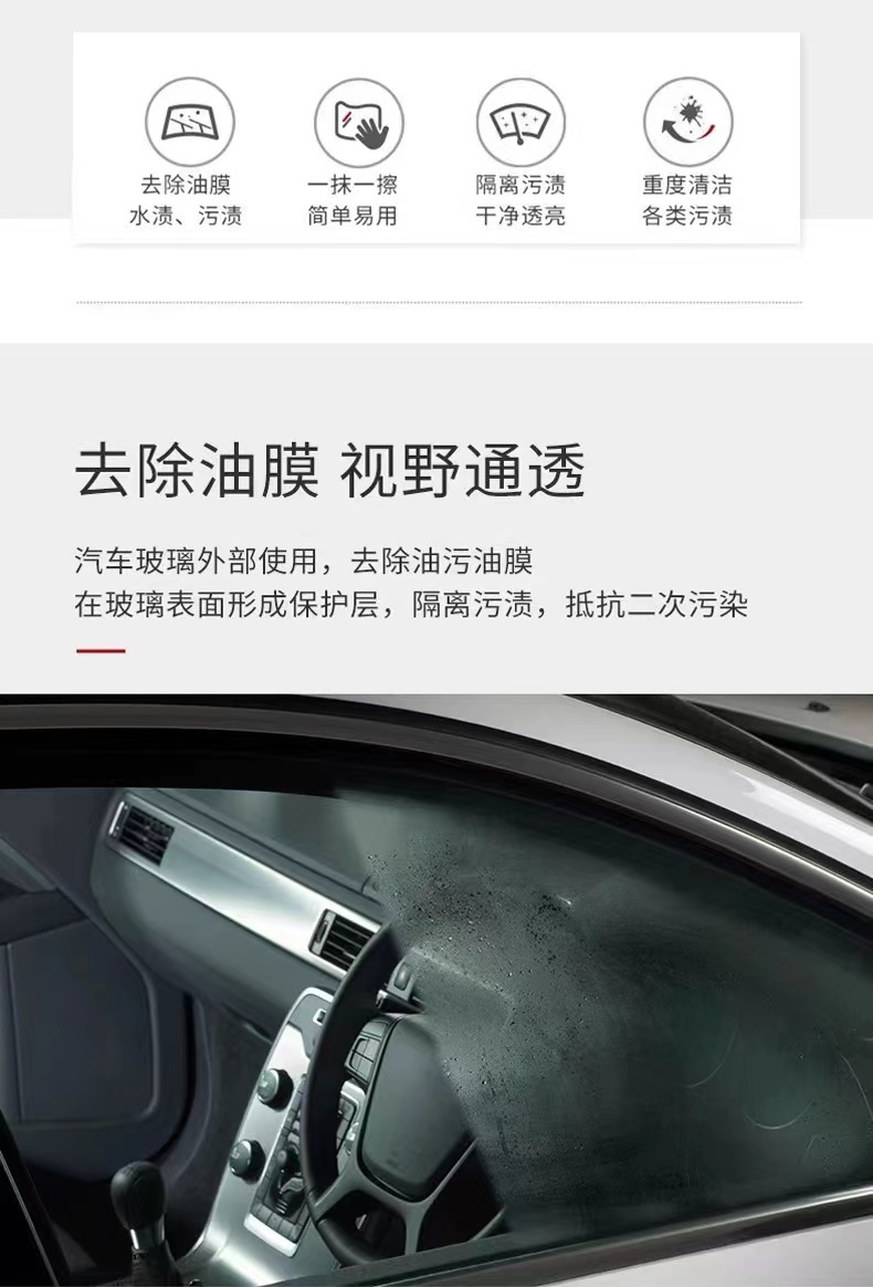 振音がよく売れている自動車ガラス濃縮油膜除去剤のフロントガラス洗浄剤の汚れ除去剤が箱全体に入っている