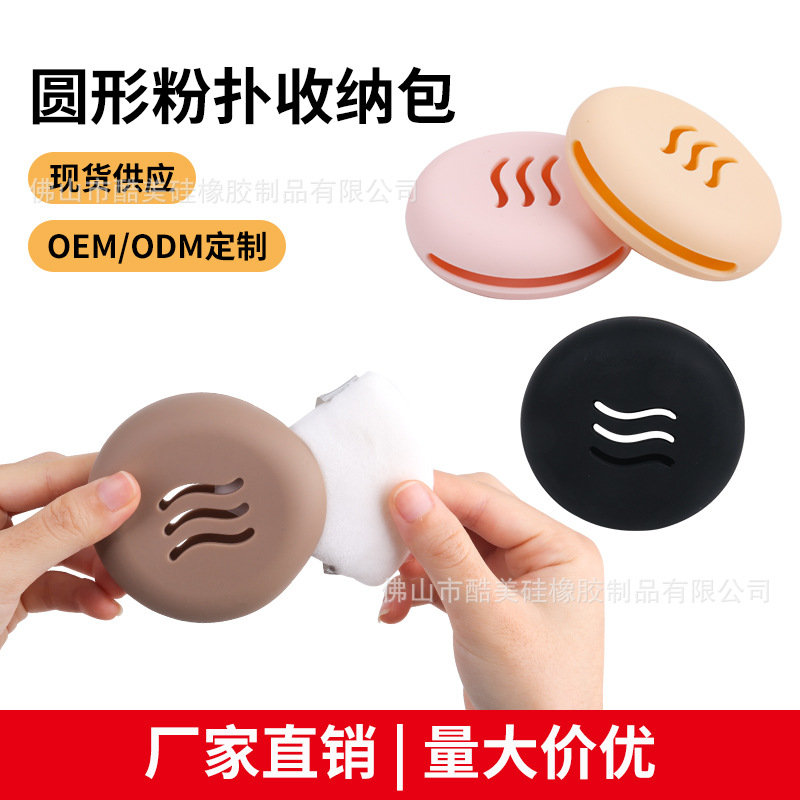 国境を越えて人気のある乾湿化粧パフシリコン収納ケース通気防塵円形スポンジ粉化粧パフ収納バッグ