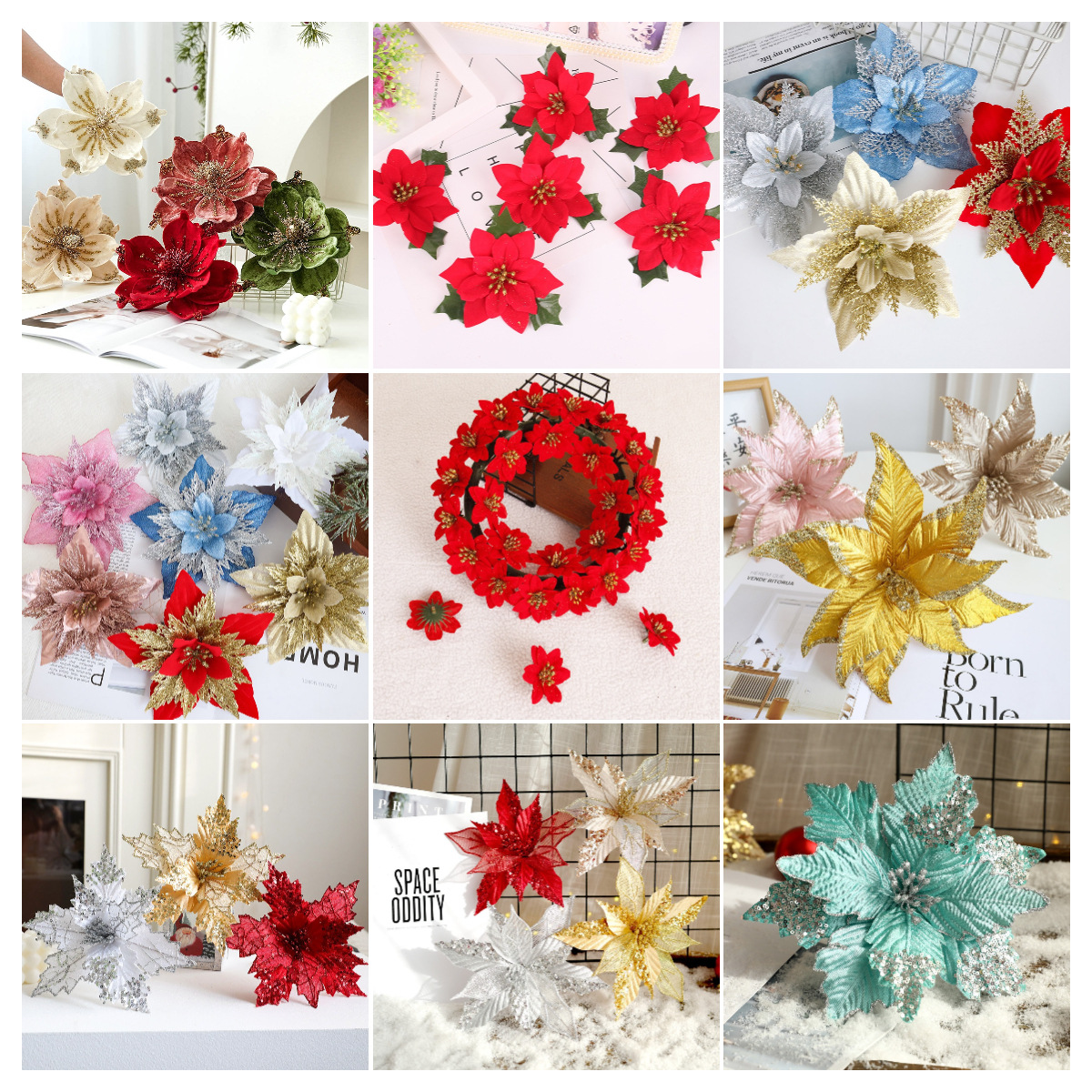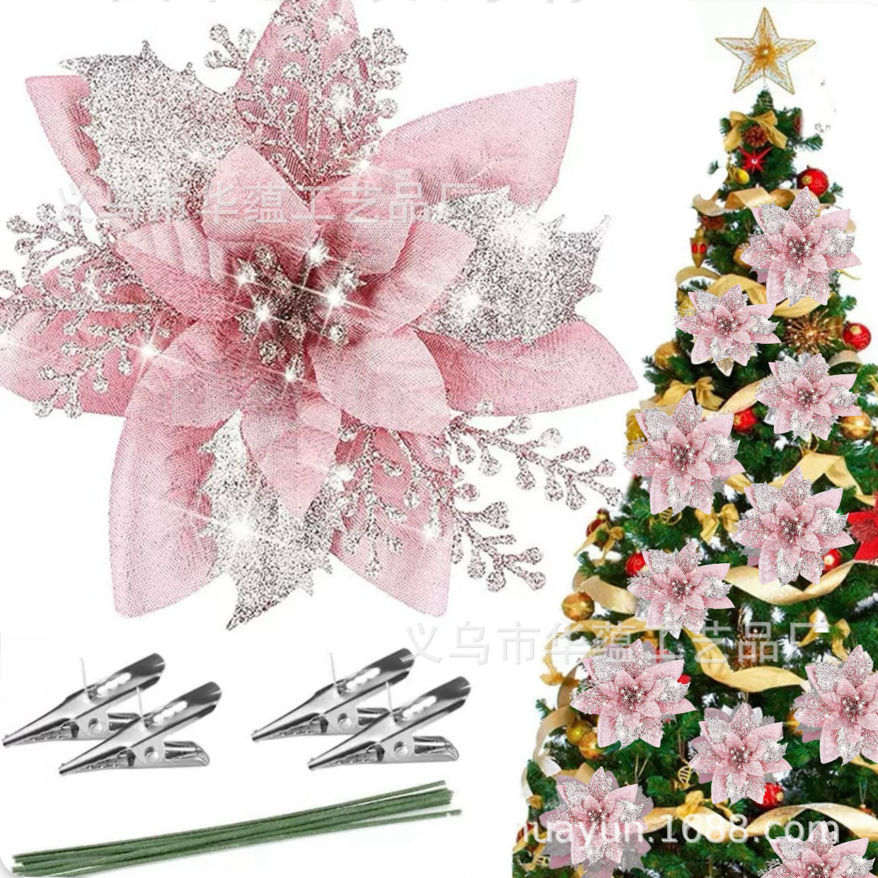 跨境银粉色金粉圣诞花圣诞树装饰圣诞节圣诞花环配件批发节日装饰