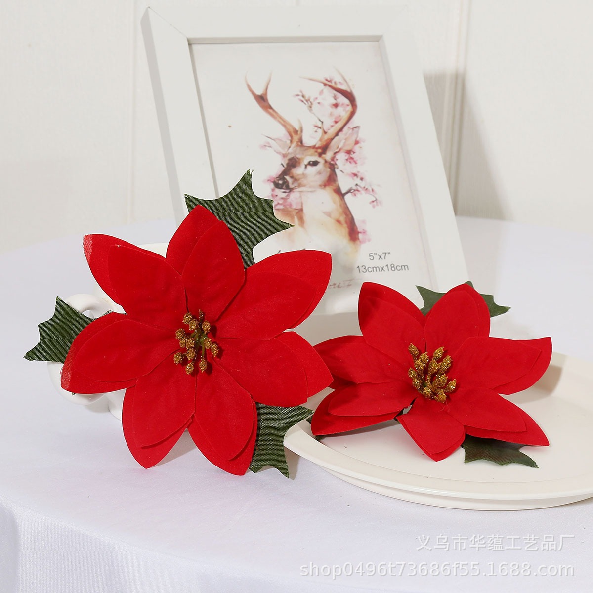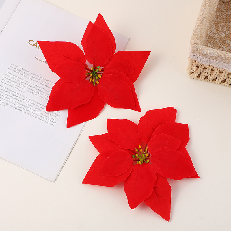 仿真花一品红绒布花头圣诞树装饰派对节庆日气氛花束插花配件