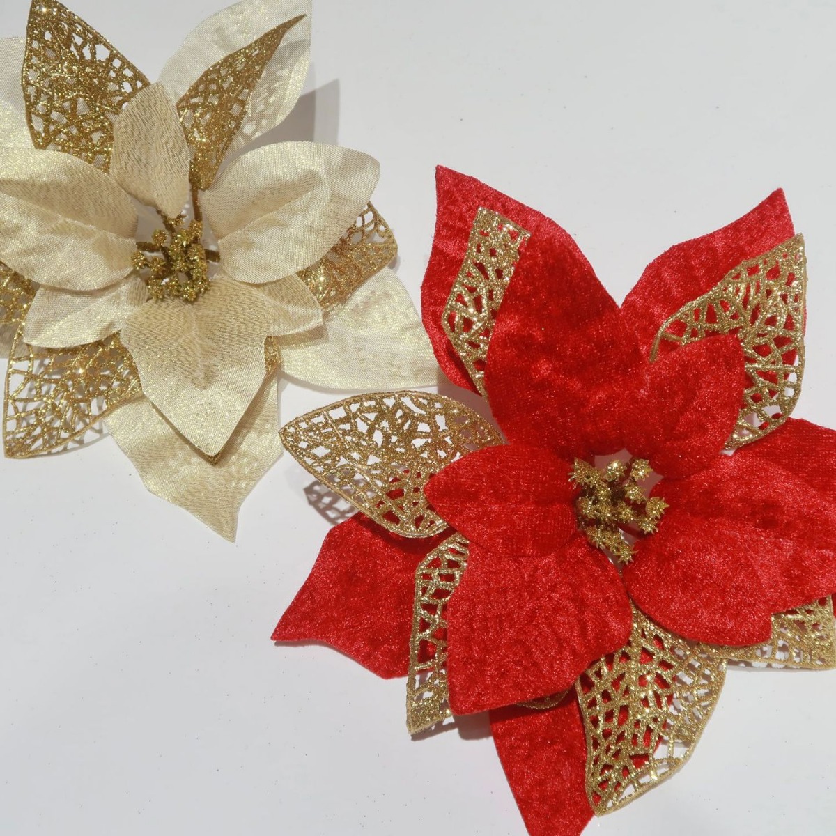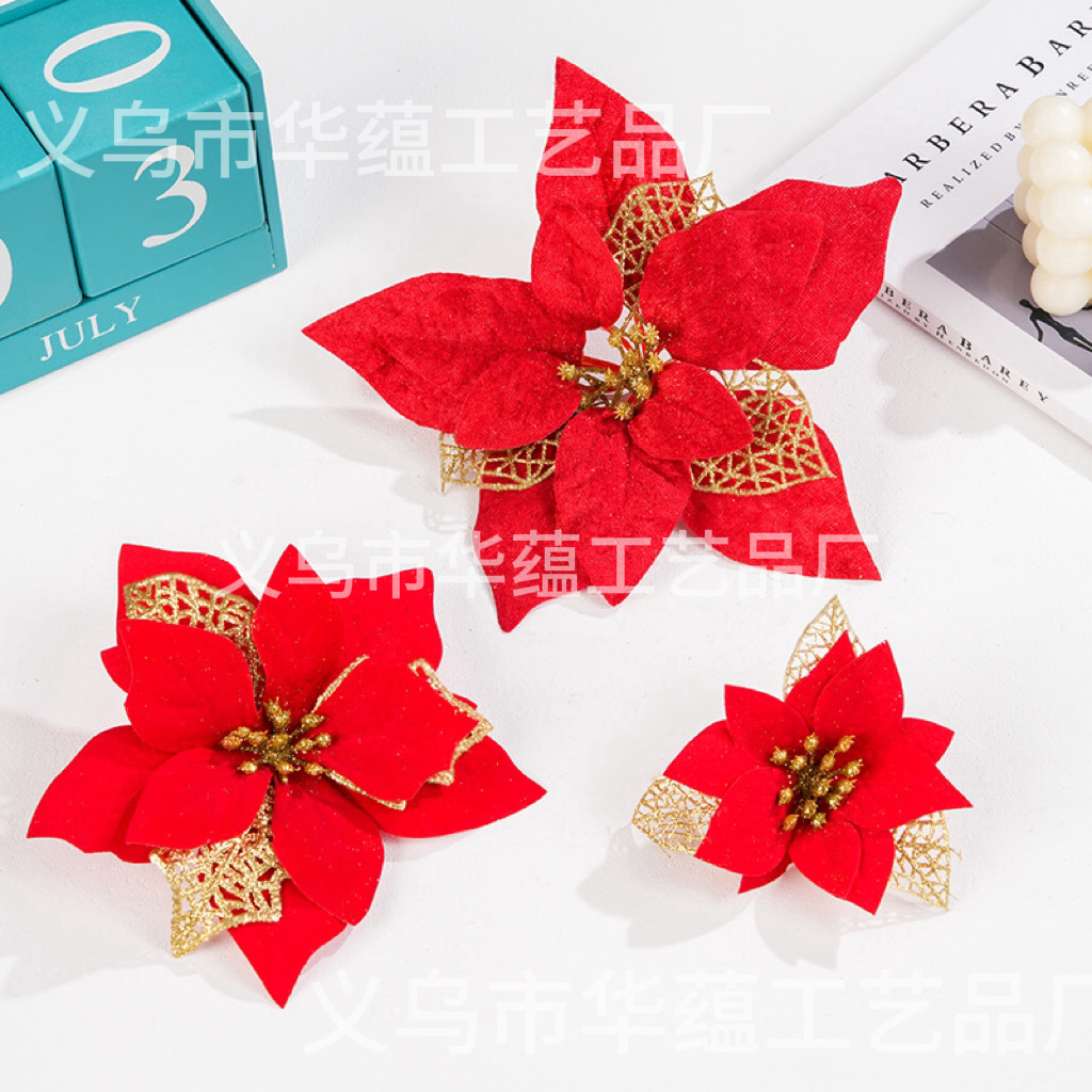 クロスボーダー新しい造花クリスマスゴールドパウダークリスマスフラワークリスマスツリーアクセサリークリスマス装飾ベルベットフラワーアクセサリー