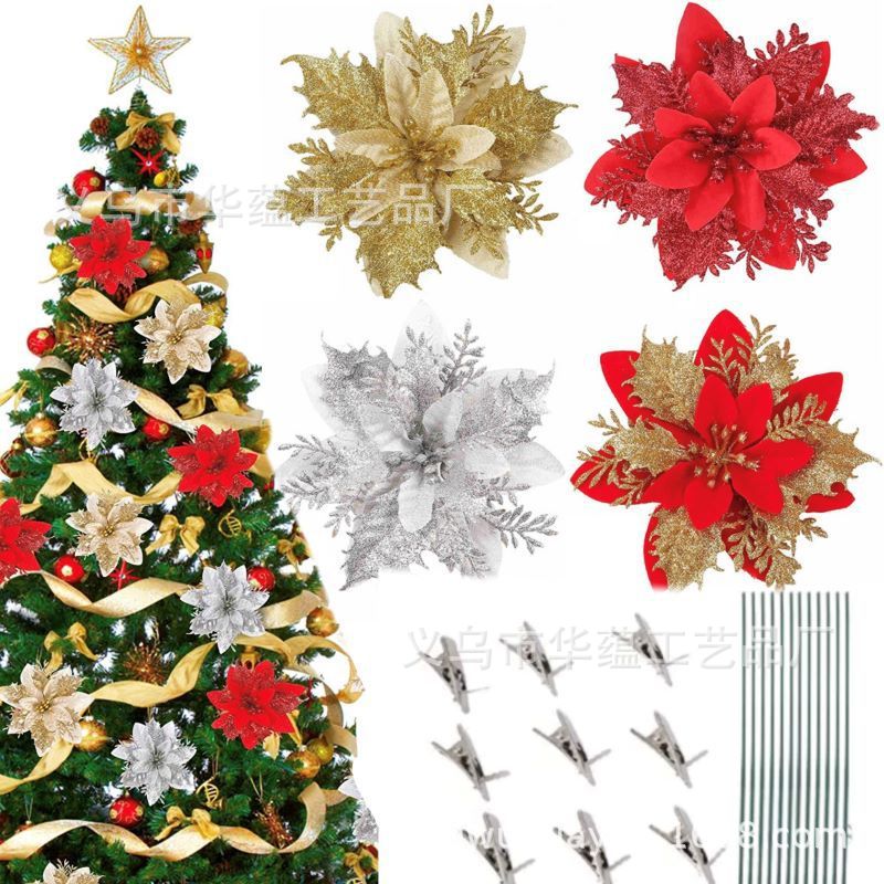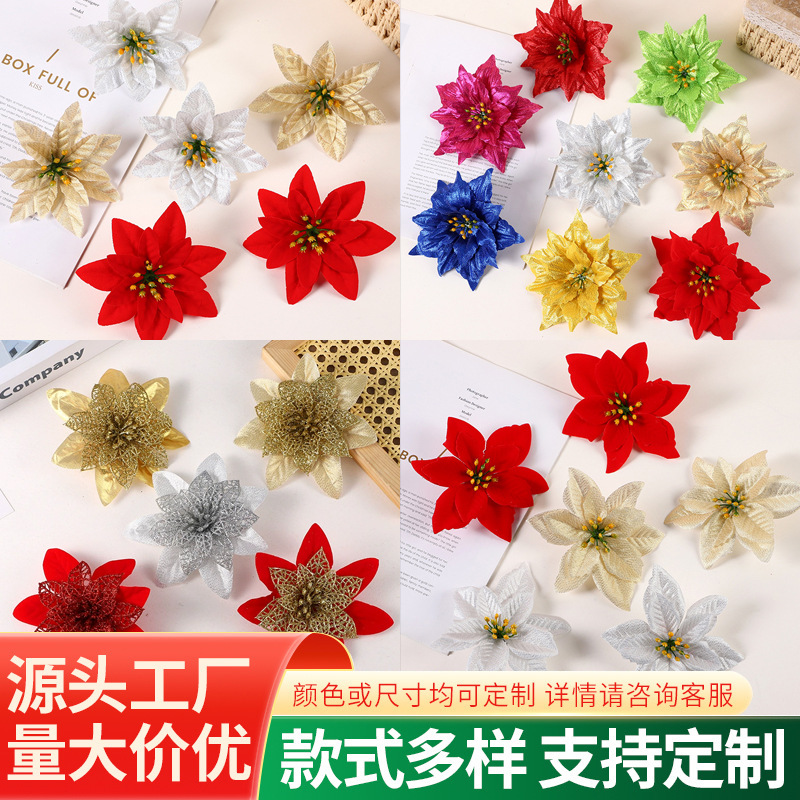 クロスボーダー14cm金粉クリスマス花クリスマス装飾花シミュレーション花クリスマス花輪部品クリスマスツリー装飾