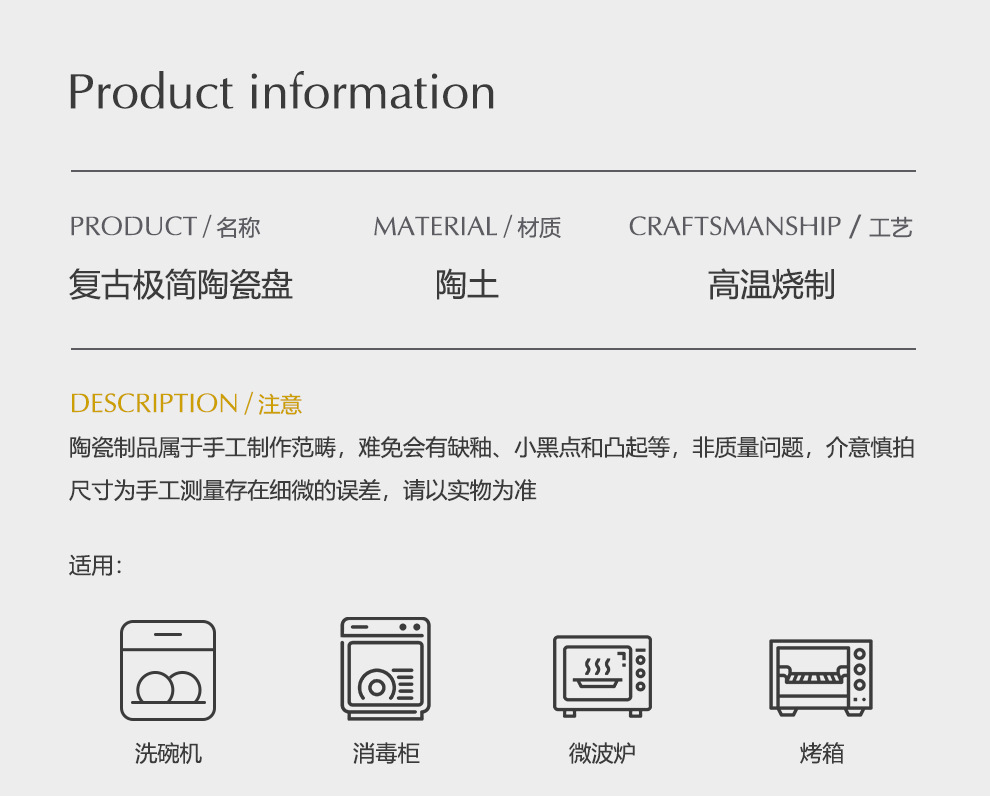 2.关于质量:陶瓷制品属于手工制作,可能存在轻微黑点、凹凸点、缺釉针孔等工艺附属情况,属于正常现象,不属于退换等范围内的质量问题,餐具并非艺术品,无法保证玩美,介意的宝宝慎拍;