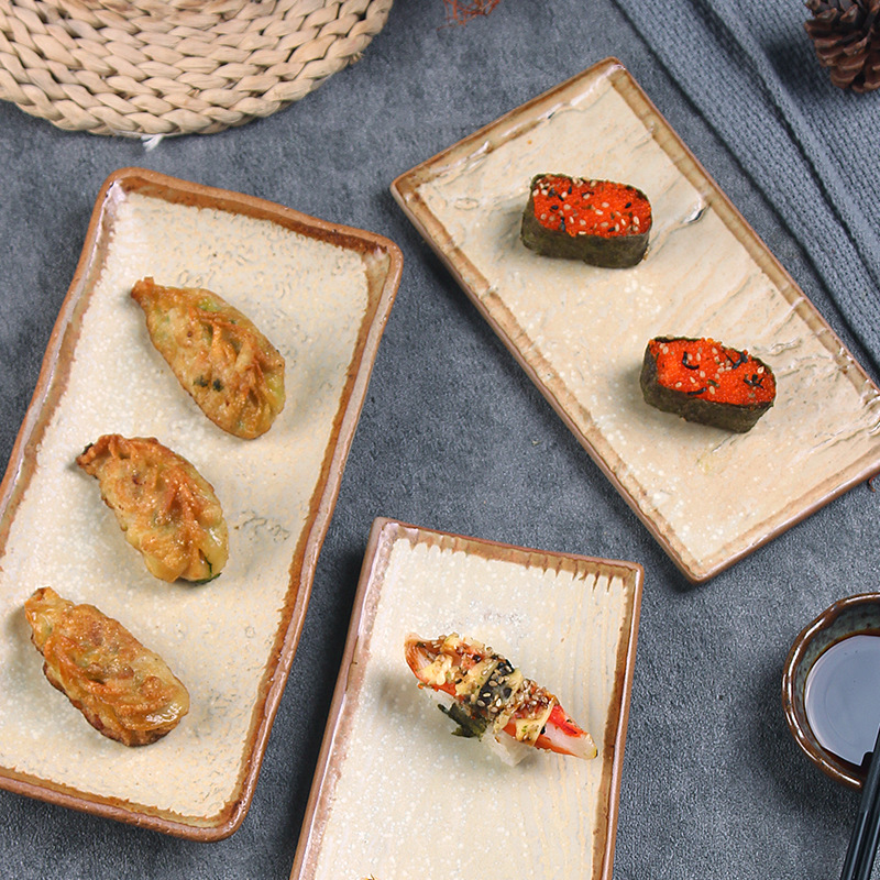 日本式寿司皿レストラン家庭用陶磁器焼き鳥皿創意長方形皿日本料理レトロ皿