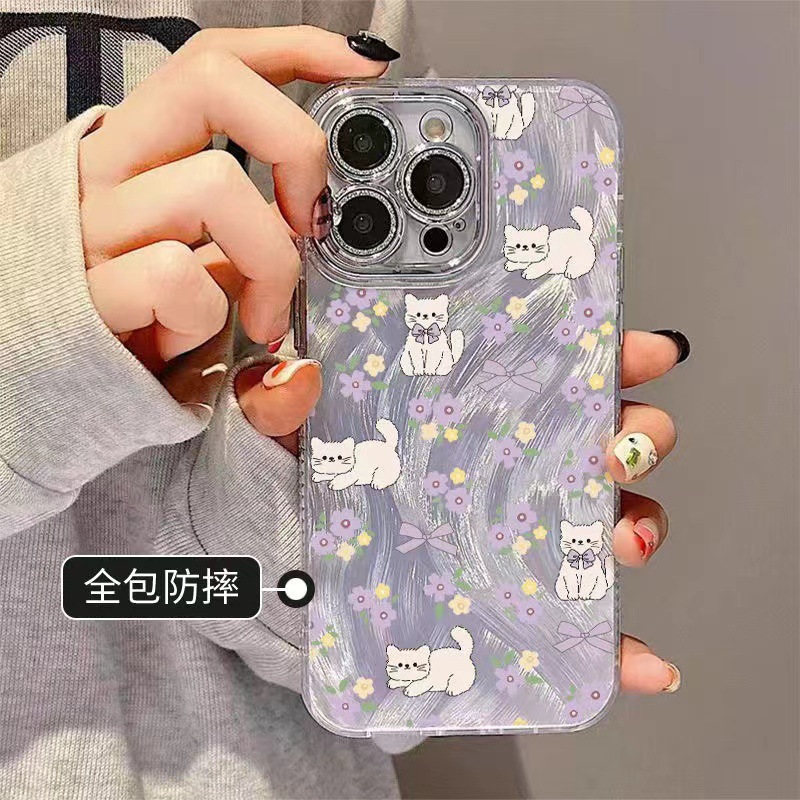 新型砕花iPhone16Promax携帯ケース15/14アップル13全包式12p羽糸レンズフィルム付き