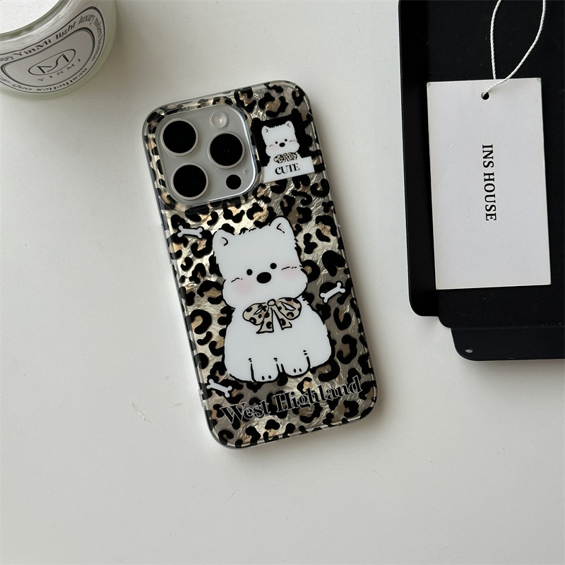 甘いクール豹紋西高地犬はiphone16 promaxリンゴ14携帯ケース15羽糸保護カバーを適用している