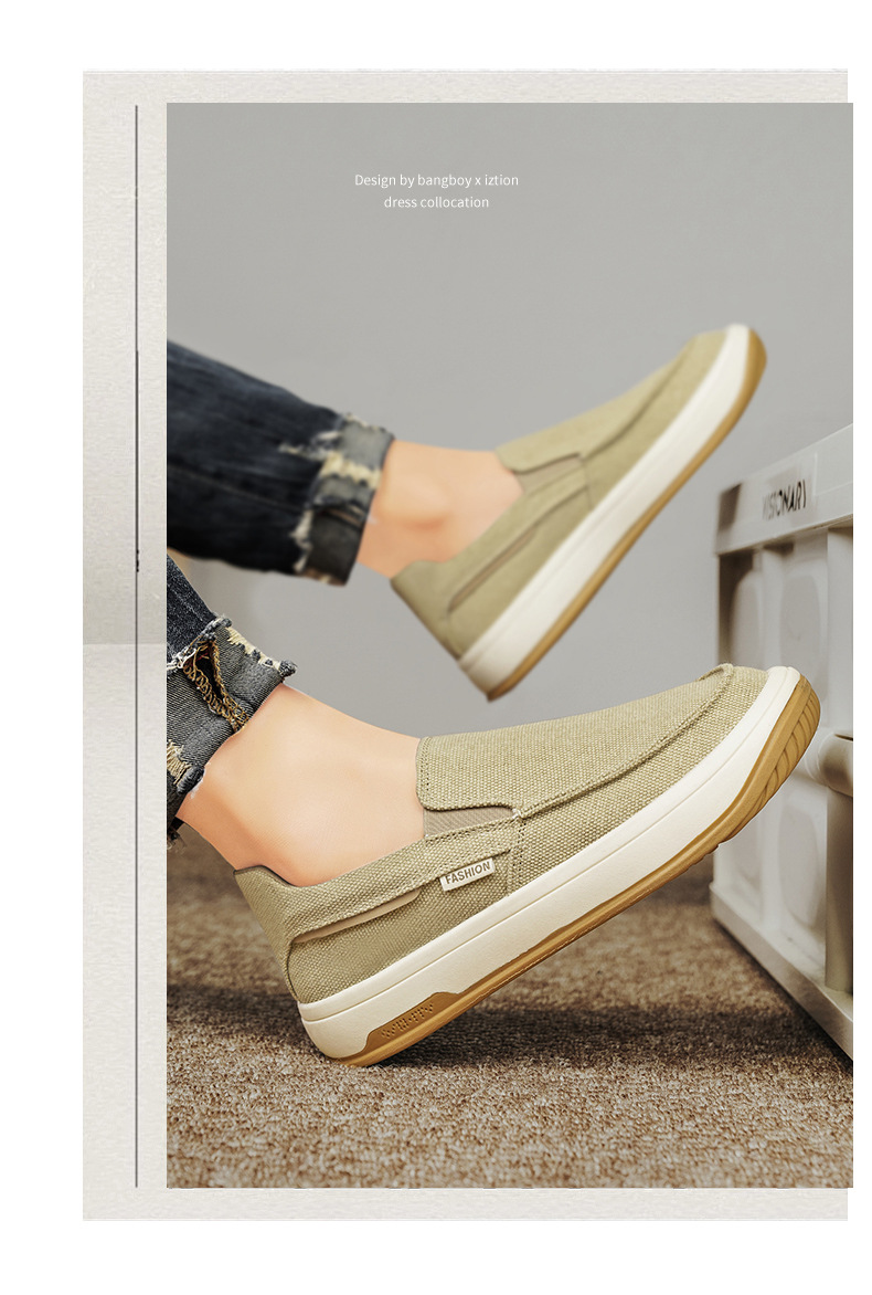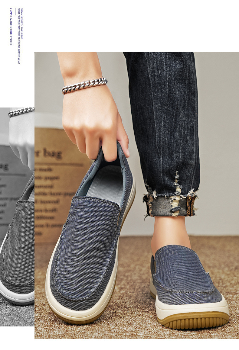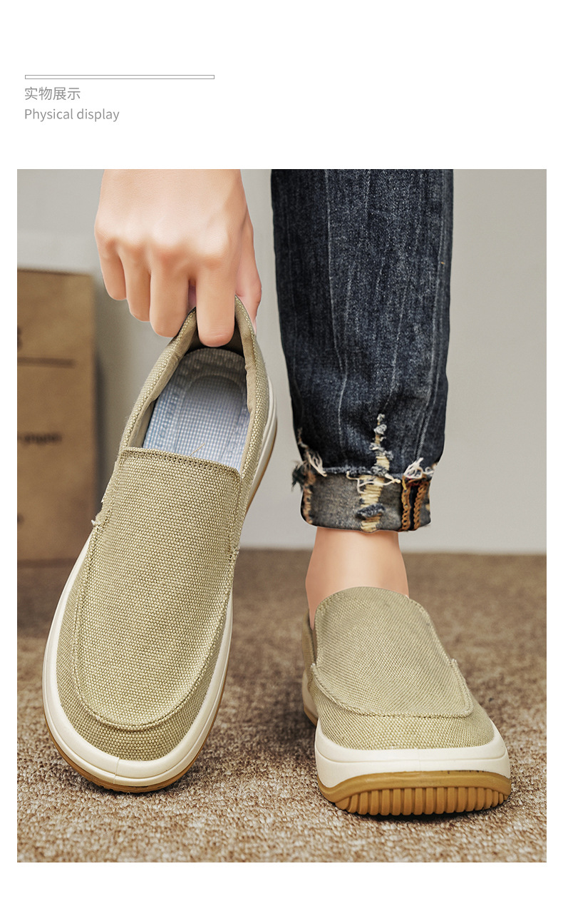 男の靴2024夏の新型の通気性の古い北京の布の靴のカジュアルな柔らかい底の薄いタイプの軽くて怠け者の足で男性を漕ぎます。
