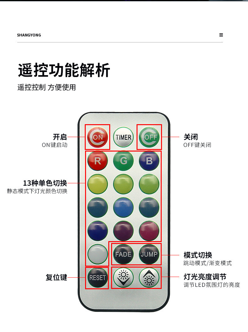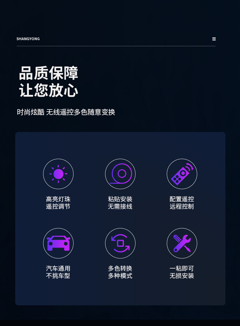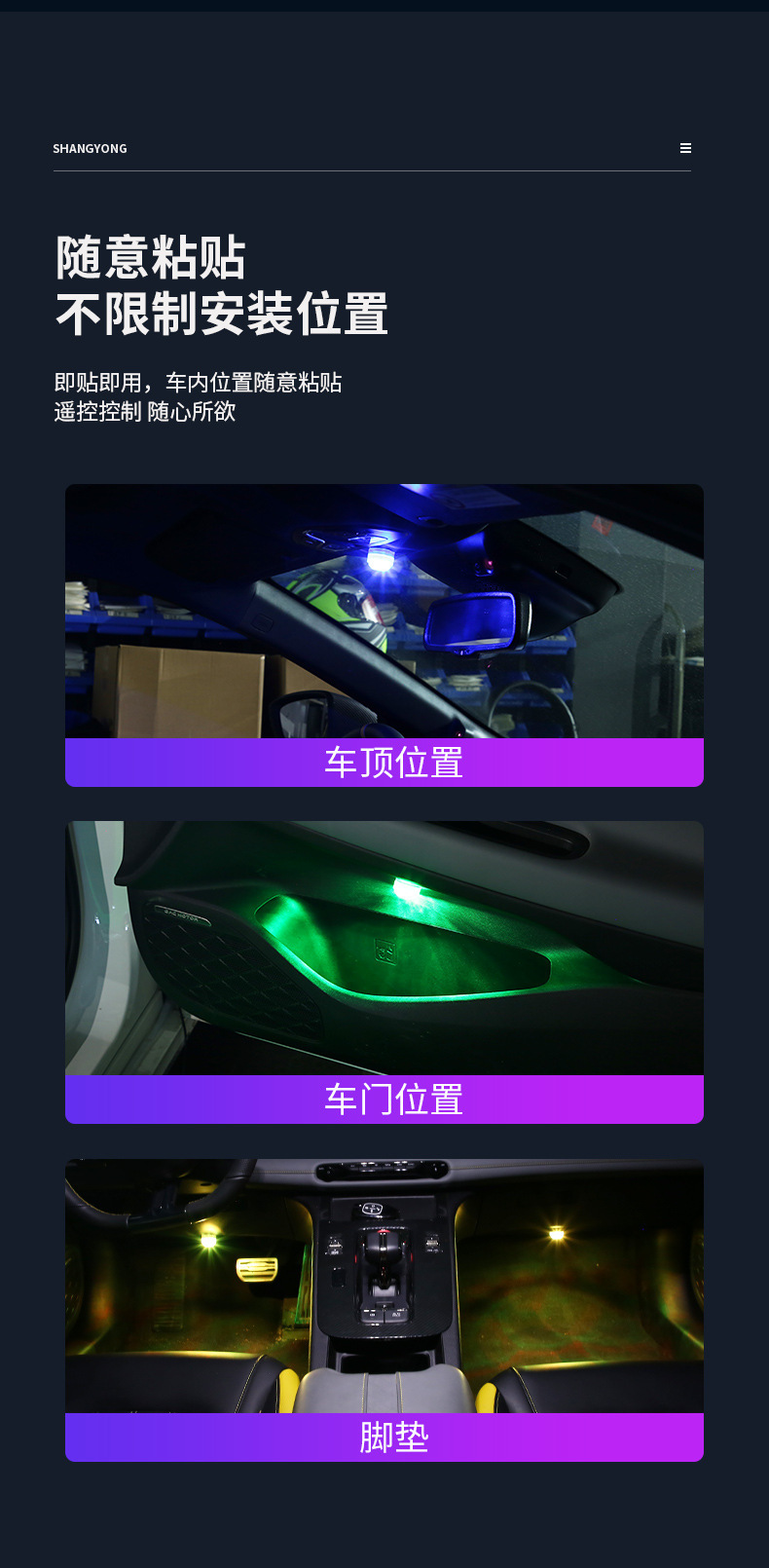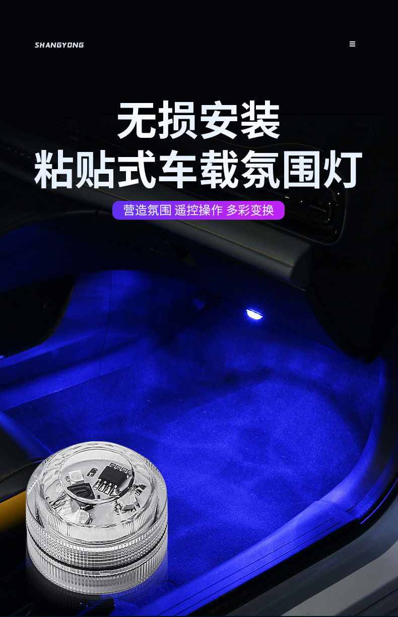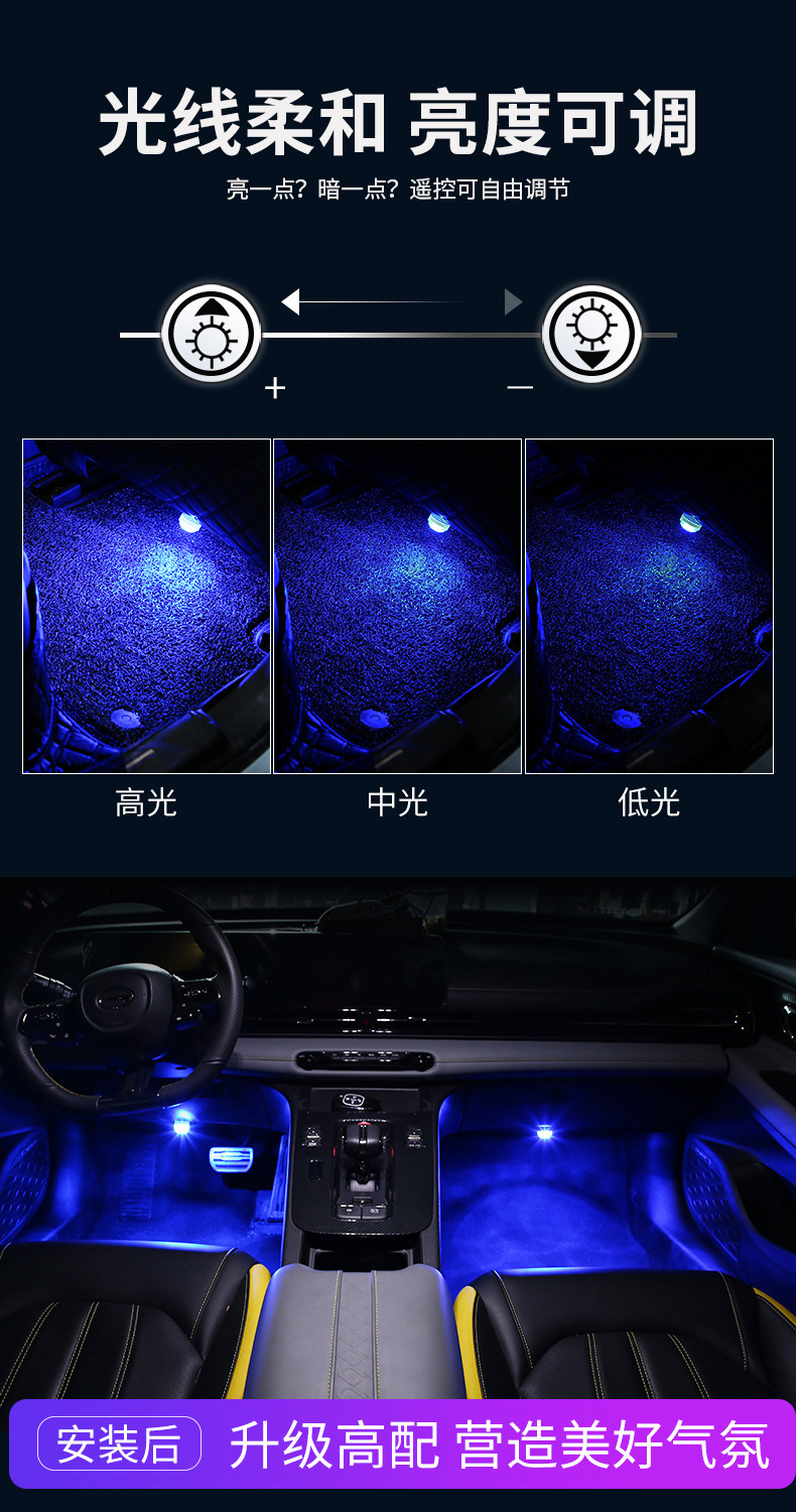 新型自動車七彩通用雰囲気灯内装無線リモコンLED装飾灯足底灯無配線設置