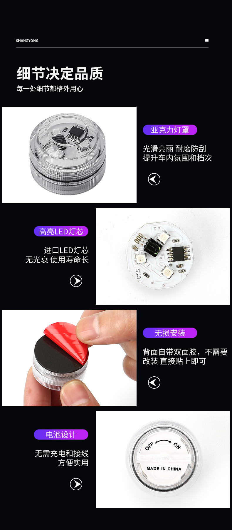 源クロスボーダー専用車用USB雰囲気灯アクリル衝突色車載USB雰囲気小夜灯装飾灯