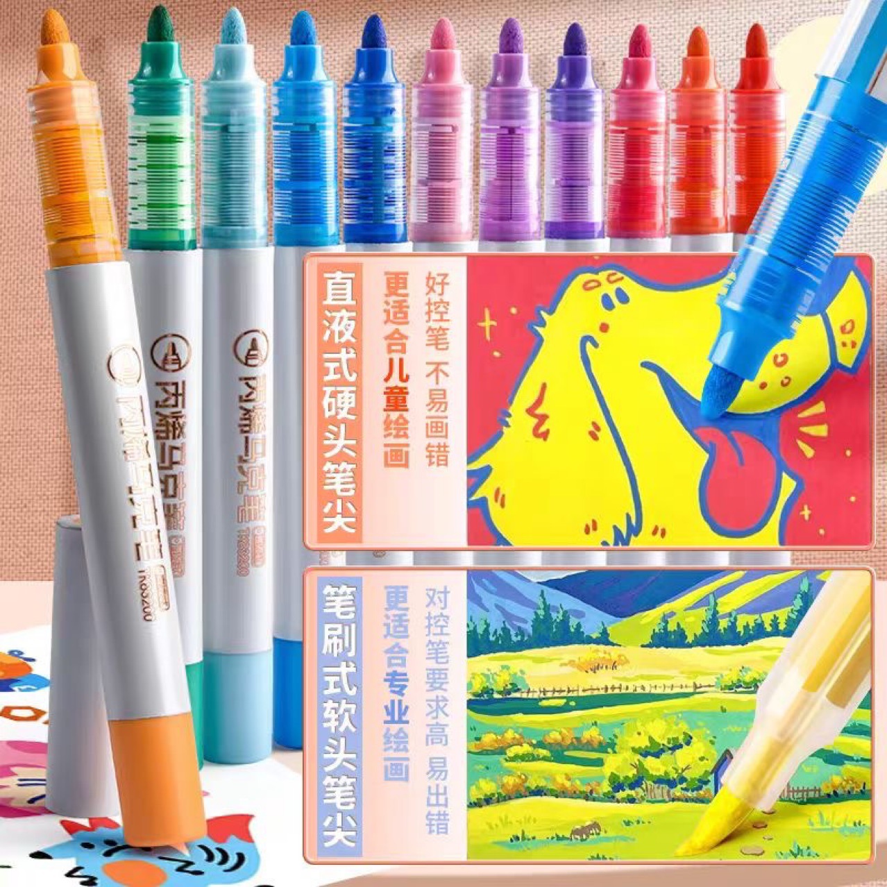 天卓直液式アクリルマークペン水彩ペン学生用透けにくい色は畳みやすい小学生美術用