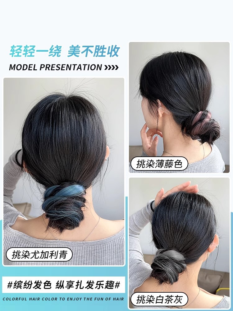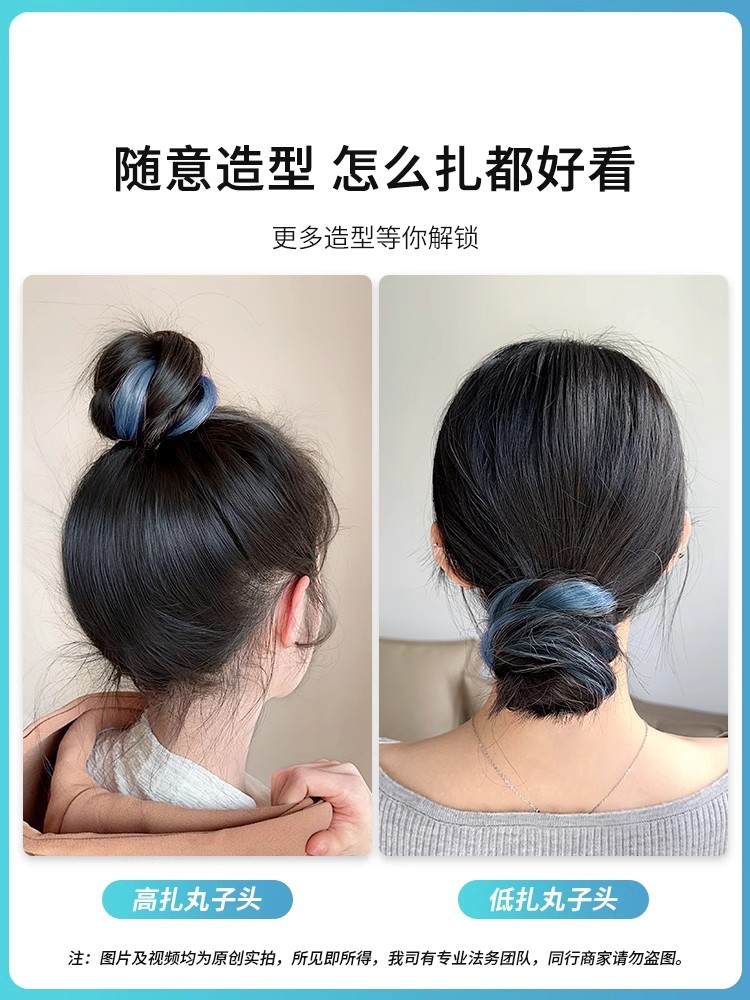 セルフ巻き付け式丸髪ウィッグ、ハイライト入りヘアピース、花のつぼみ型ヘアアクセサリー、人工毛ヘアリング、ローカットヘアゴム
