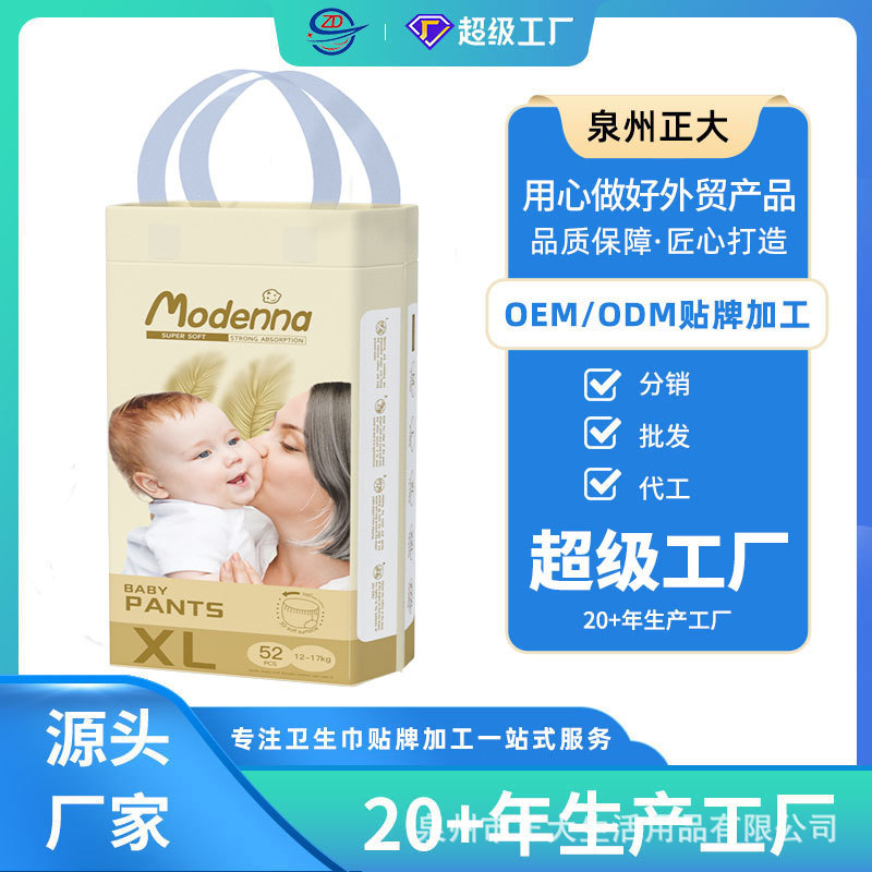 源工場の乳児用紙おむつ男女の赤ちゃん用ズボンは超薄型で乾燥しています。
