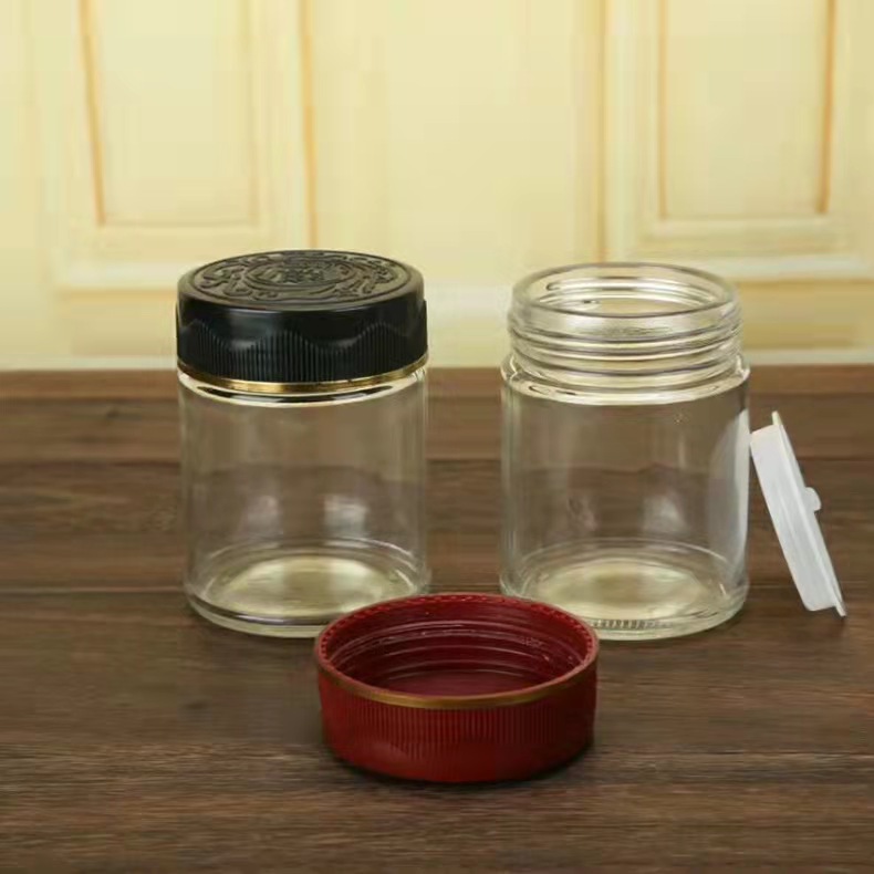 ラウンド渍物ガラスボトル195ml 240ml牛肉チリソース缶诘包装クリアシール盖付き発泡スチロールボックス