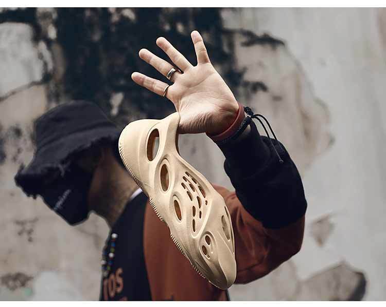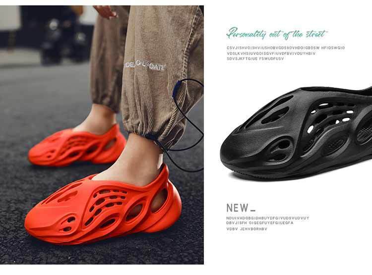 大量の現物の侃爺ネットの赤いスターの同じタイプのyez350透かし彫りの穴の靴のfoamのサメのサンダルの親子の男女