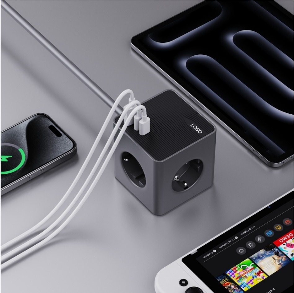 25 新しい高見えヨーロッパ ルービック キューブ ソケット コンバータ スイッチ付き 1 ターン マルチ PD 高速充電 CE ヨーロッパ標準プラグ ストリップ